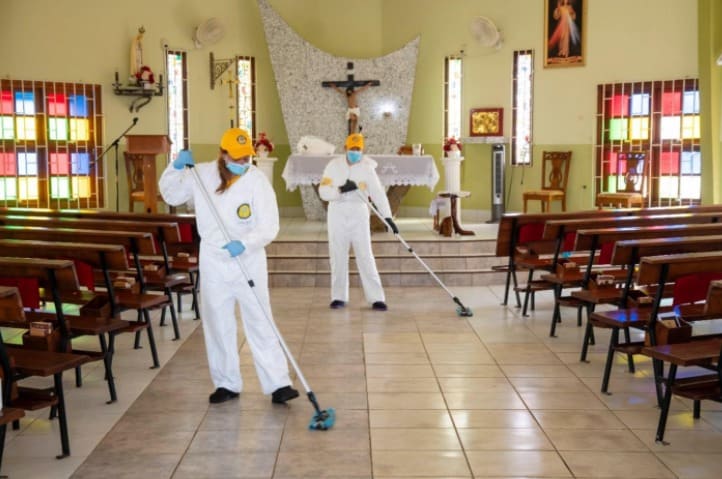 Banda di e distribucion di e materialnan educacional riba con pa keda liber di Covid-19 Freewinds ta envolví den un esfuerzo hopi grandi pa desinfecta mas tanto lugar cu por. Esaki ta wordo hasi den asociación cu negoshinan y organisacionanpa ta envolví den e desinfección riba nos isla.