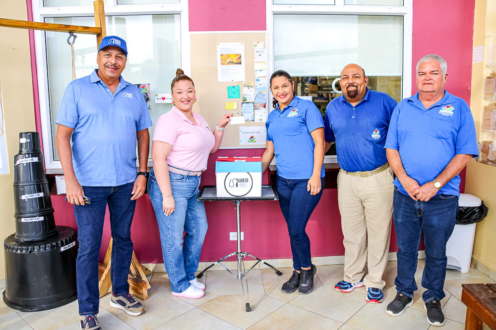 Awe diamars mainta den presencia di representantenan di WEB Aruba NV srta. Mary-Anne Everon, Secretarieel Adm. Medewerker Waterdistributie en Customer Service y sr. Efraim Rafael Hoofd Customer Service. Di parti di Departamento di Agricultura, Cria y Pesca Santa Rosa, srta. Carola Geerman, sr. Anthony Matos y sr. Humphrey Croes Hefe di Administratie a saca e feliz ganado den nomber sr. Sigmund Werleman. Despues cu e ganado a bira conocí a purba drenta den contacto cu e ganado pero esaki no tabata contesta su Celular. Pero despues di algún intento nos a logra comunica cune y sigur super contento y agradecido na tanto WEB Aruba NV y tambe na Departamento di Agricultura, Cria y Pesca, Santa Rosa.