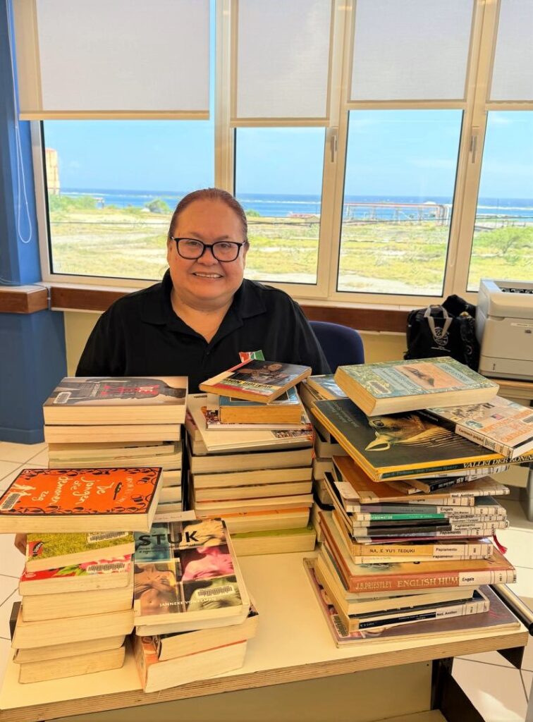 Na augustus 2025, Michelle Roos, a cumpli 45 aña di servicio, un bunita logro y ta haci’e tambe e profesional cu mas tanto aña di servicio trahando na Biblioteca Nacional Aruba. Pa mas cu cuatro decada Michelle a traha na biblioteca. El a cuminsa como Balie medewerker y pa hopi aña caba ta hefe di departamento di Catalogo. Su conocemento, liderazgo y compromiso pa excelencia sigur a haci un diferencia na Biblioteca Nacional Aruba, inspirando no solamente su coleganan di su departamento, pero tambe di e otro departamentonan. Michelle su pasion pa lesa y preserva conocemento ta remarcabel. Henter biblioteca ta di fiesta, no ta solamente e 45 añanan ta conta, pero su sabiduria y dedidacion a caracterisa su carera profesional.