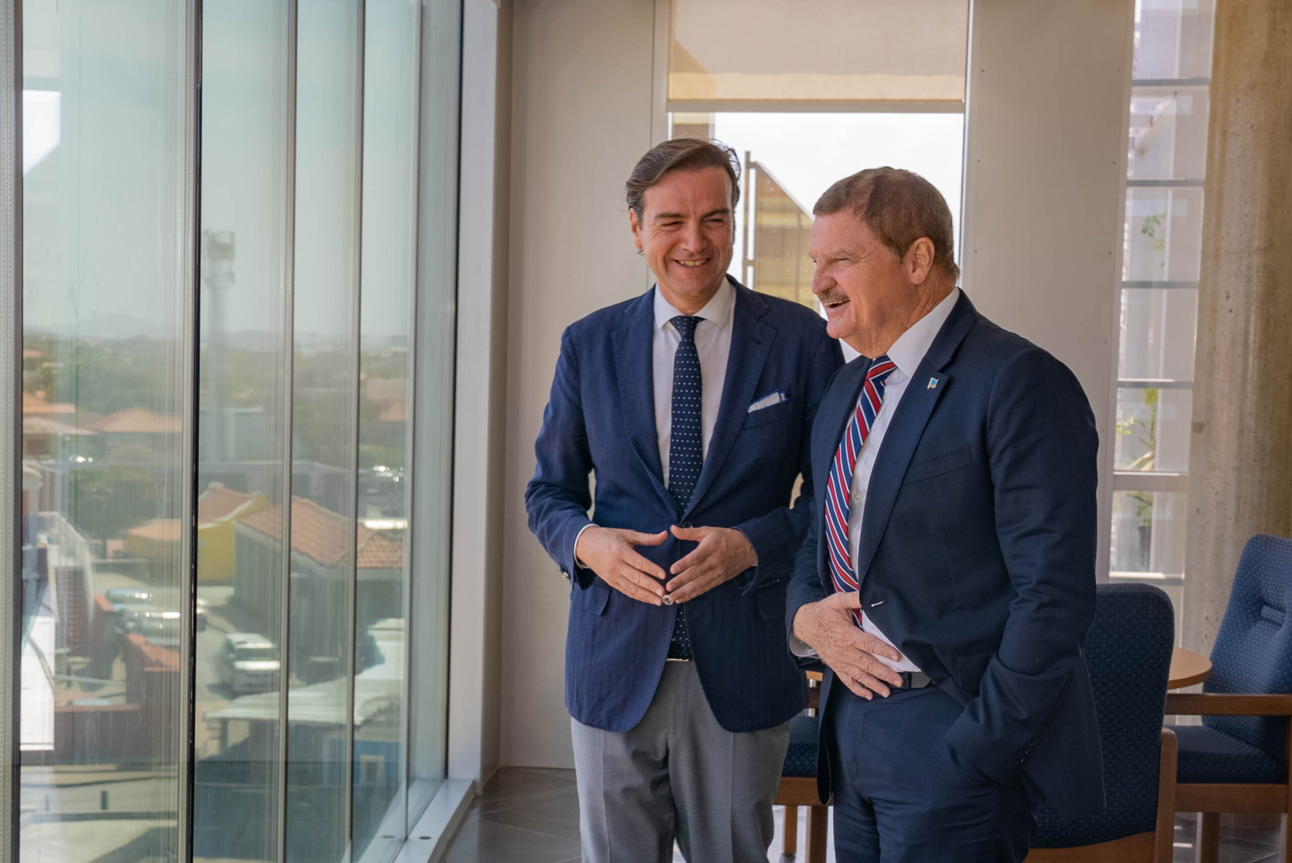 Diabierna mainta, Prome Minister Mike Eman hunto cu Minister Gerlien Croes a ricibi na Bestuurskantoor Malik Azmani, miembro Hulandes di Parlamento Europeo y representante di e partido liberal VVD, cu ta forma parti di grupo politico Renew Europe.