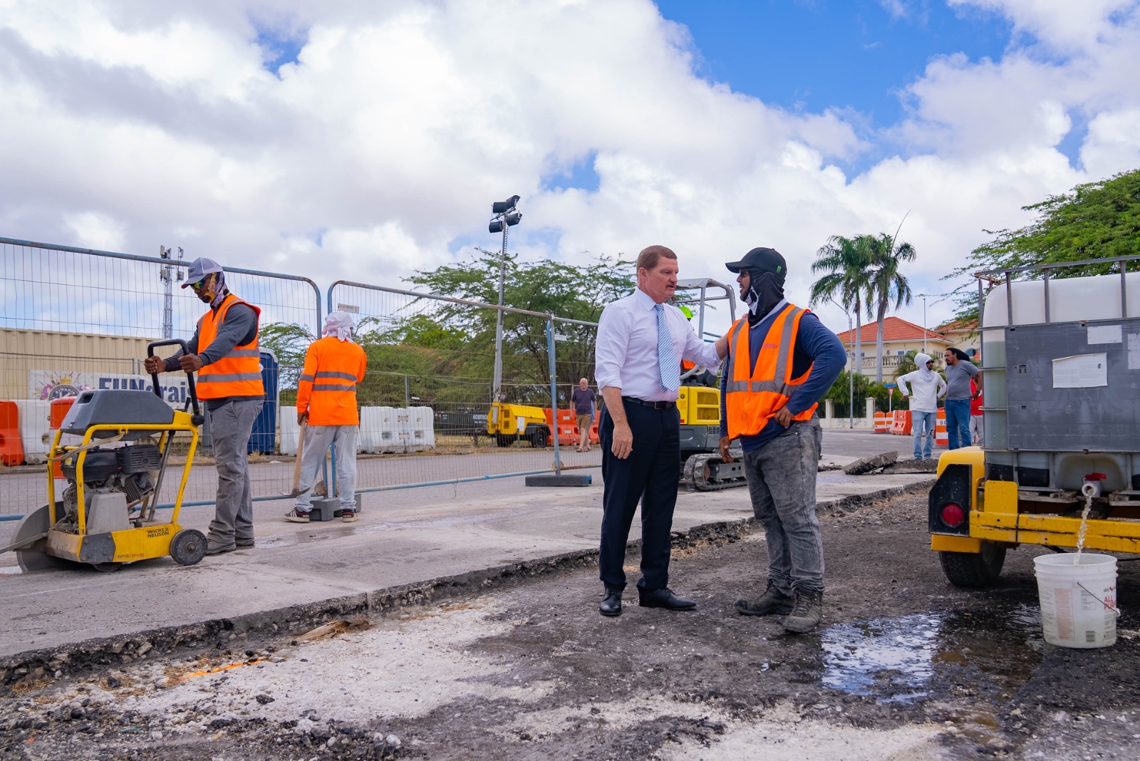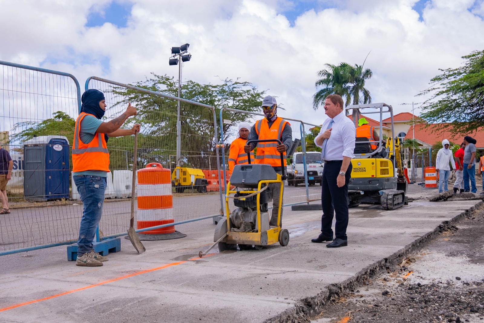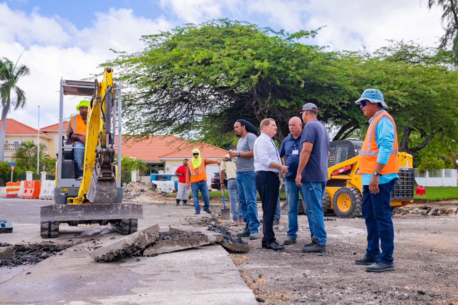 E proyecto, ehecuta door di Dienst Openbare Werken (DOW), cu ta desaroyando e obra internamente (in-house). Esaki ta permiti un maneho mas directo y eficiente di recurso y planificacion. A expresa satisfaccion cu e equipo di DOW, cu durante añanan a fortalece y desaroya, actualmente ta demostra un nivel solido di profesionalismo y compromiso.