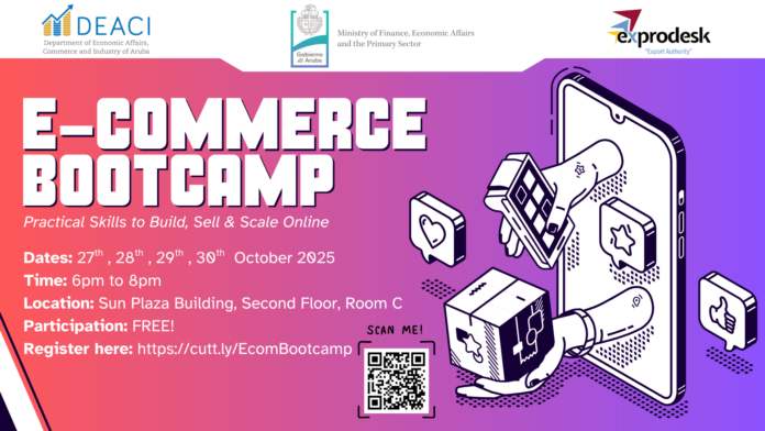 Departamento di Asunto Economico, Comercio y Industria (DAECI), pa medio di su unidad Exprodesk, ta orguyoso pa anuncia e workshop di 4 dia “E-Commerce Bootcamp: Practical Skills to Build, Sell & Scale Online”, cu lo tuma luga di 27 te 30 di october 2025. Participacion ta completamente gratis!
