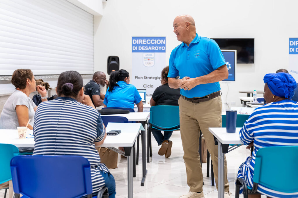 Ayera nochi den e sala grandi di MFA Paradera, a tuma luga e ultimo tayer di e “Capacity Building Training Fase II” unda tur federacion miembro di Comite Olimpico Arubano (COA) a haya un oportunidad pa intercambia informacion y ideanan cu otro federacionnan presente ademas di algun docente cu a participa den e curso. E sesion aki tabata e ultimo presencial prome cu e entrega final, unda tin como tarea pa entrea sea un “strategic framework” of un plan strategico.