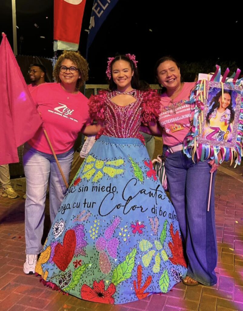 Anwizyann “Zizi” Geerman a sa di conkista algun premio grandi manera Reina Popular, Best Dress y segunda finalista durante eleccion di Reina Hubenil 2026 den Carnival Village.