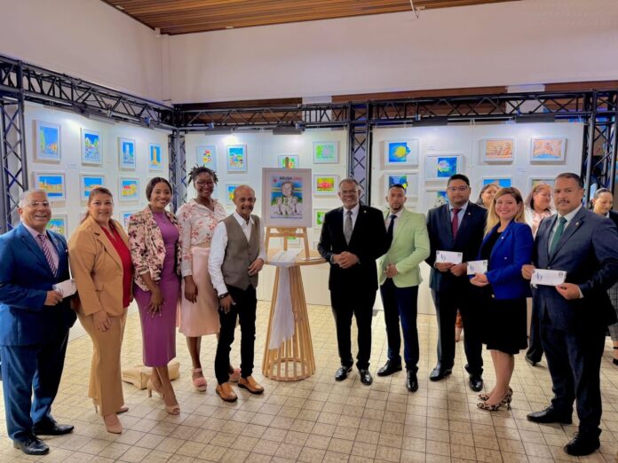 Durante e acto oficial di presentacion y develo di e stampia, miembronan di Fraccion di AVP a tuma parti na e ceremonia, compartiendo e momento historico hunto cu famia, autoridad y otro invitadonan presente.
