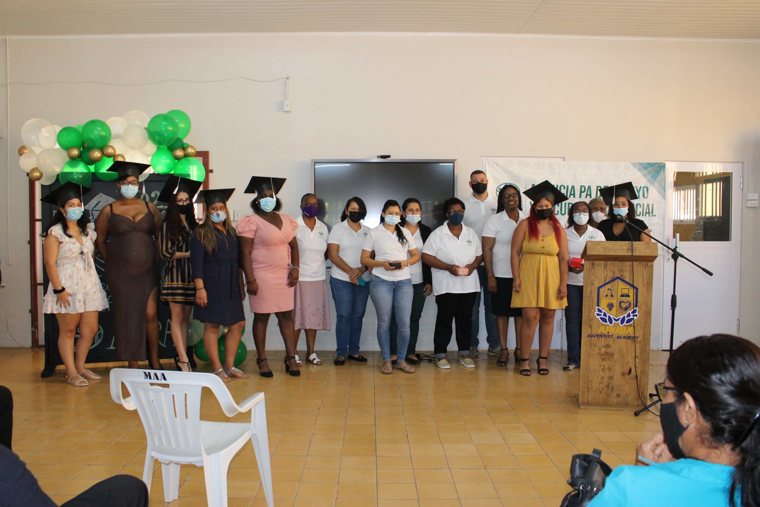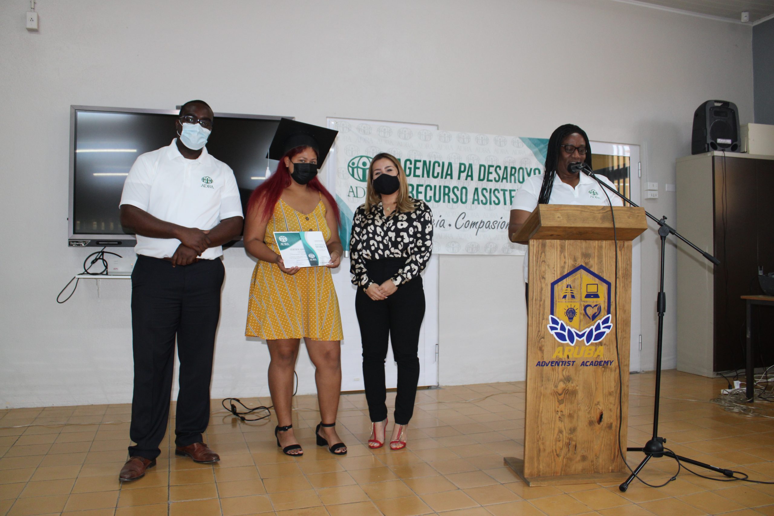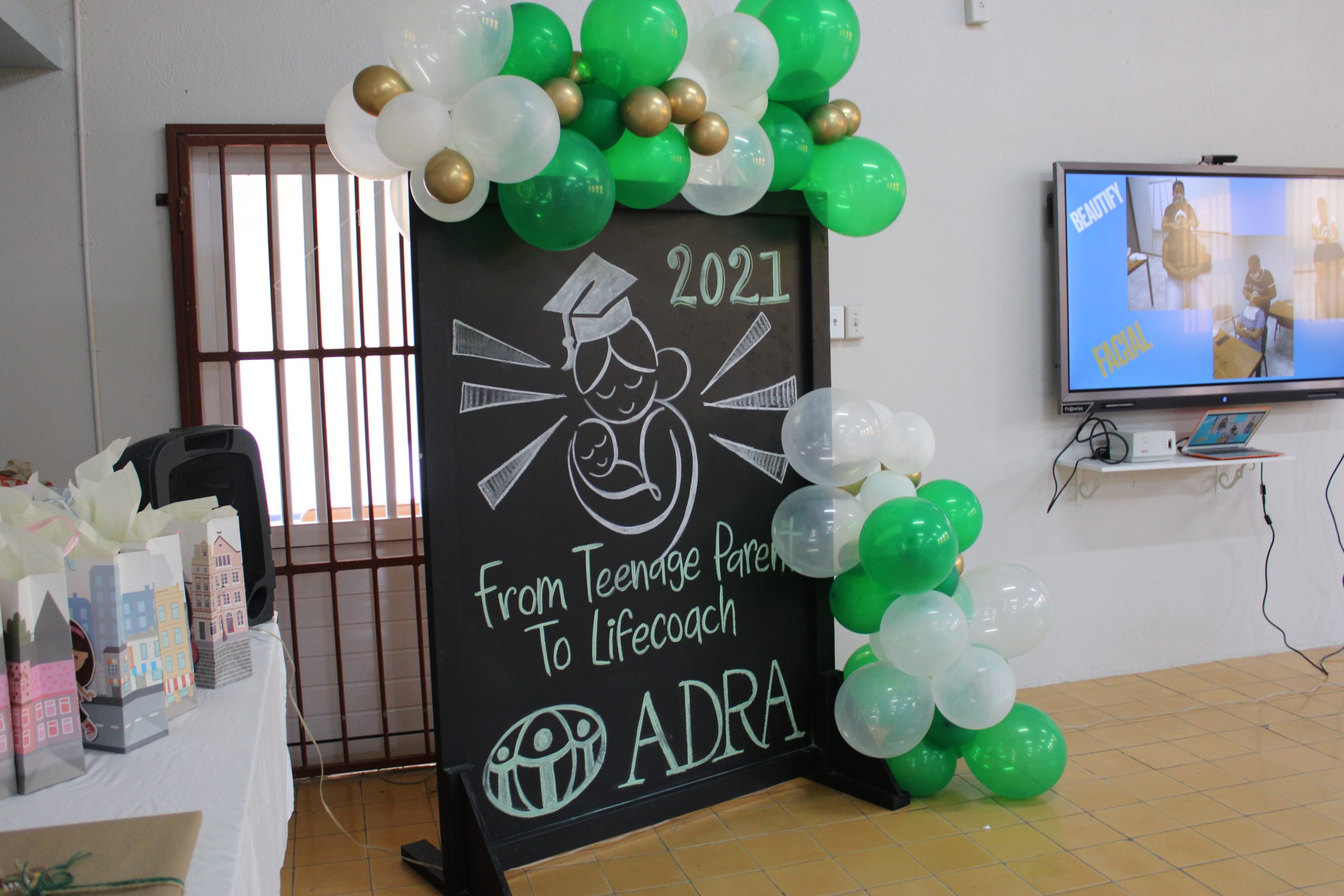 Diaranson 24 di februari 2021, den e auditorio di Aruba Adventist Academy yena cu mamanan hoben y famia, miembronan di Parlamento di Aruba, miembronan di Hunta Directiva di ADRA Aruba y demas invitadonan special; Fundacion ADRA Aruba a duna clausura na e di dos grupo di e proyecto pa mayornan hoben bou di e titulo ‘From Teenage Parents to Life coaches’