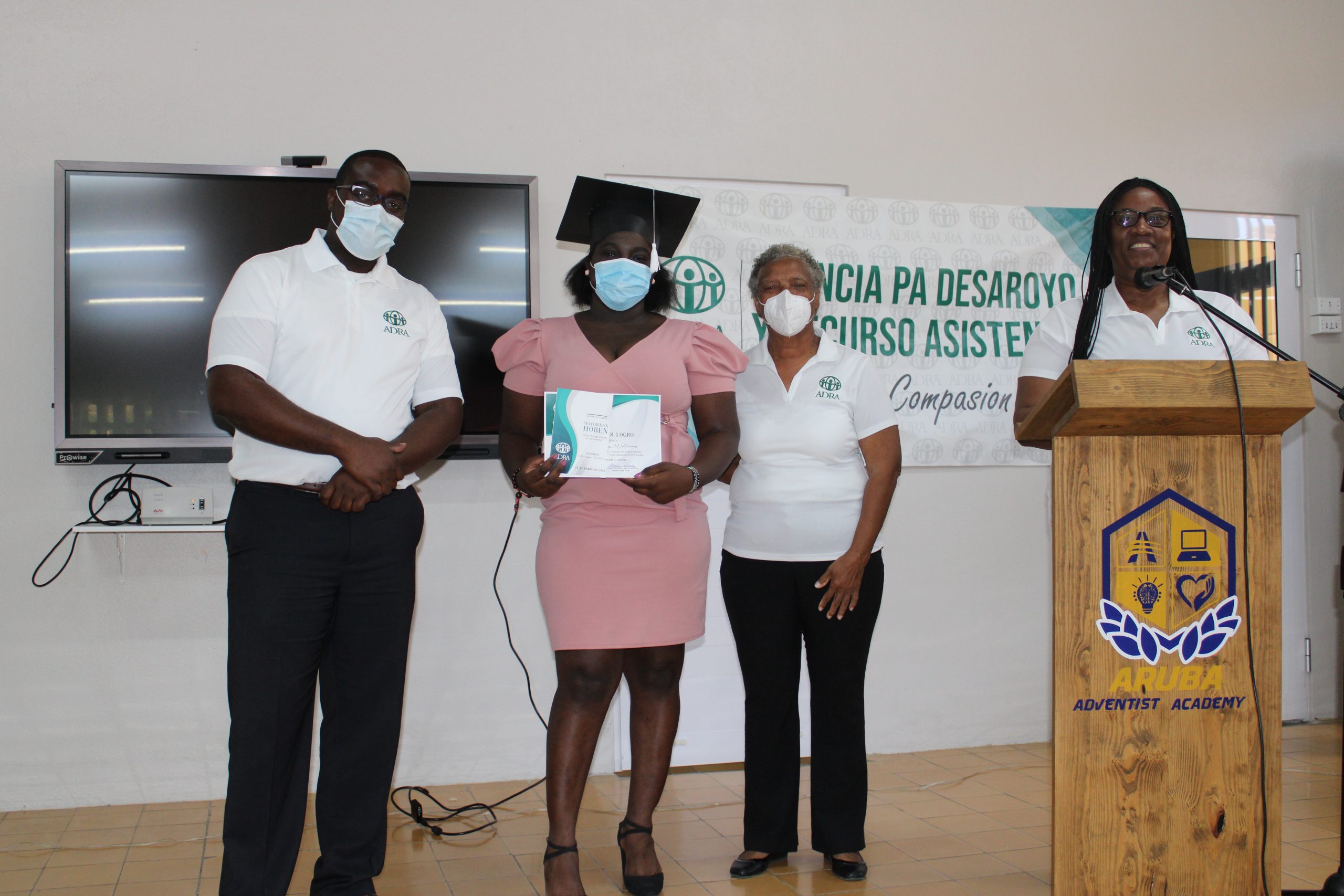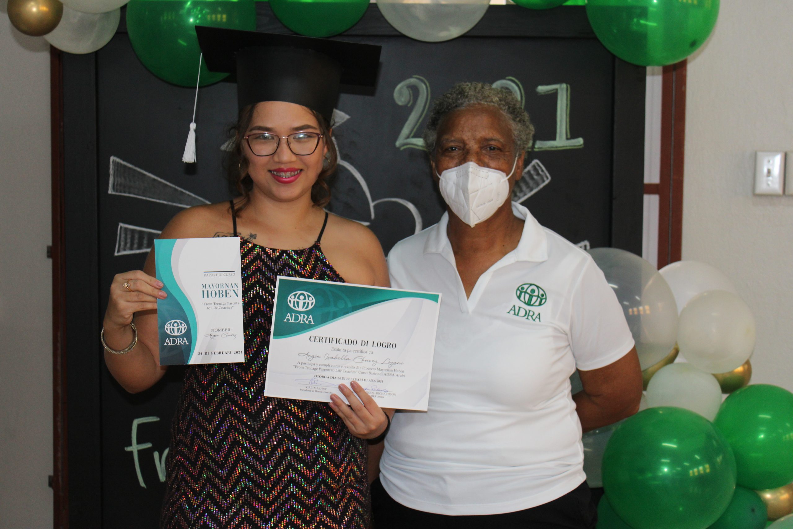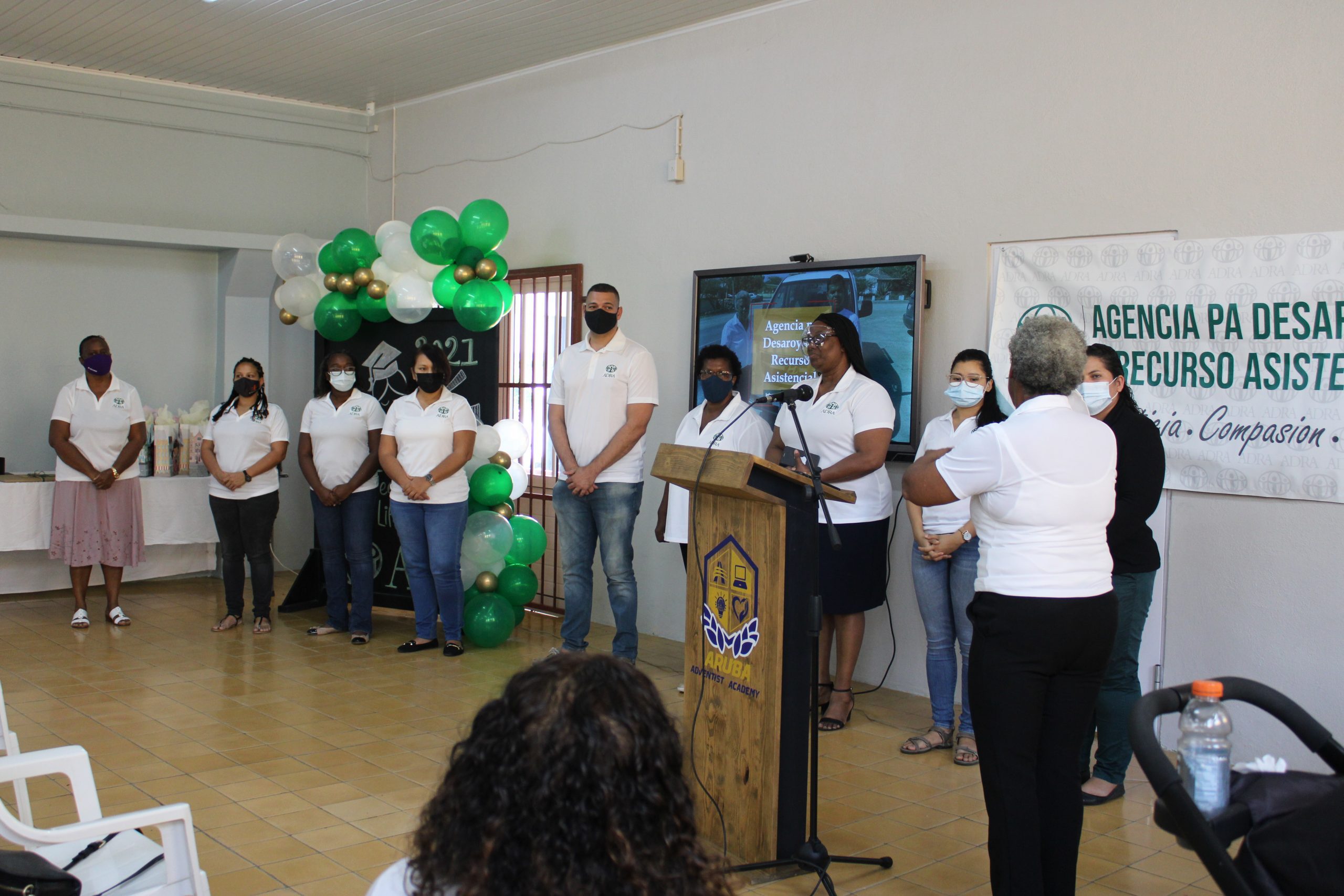 Diaranson 24 di februari 2021, den e auditorio di Aruba Adventist Academy yena cu mamanan hoben y famia, miembronan di Parlamento di Aruba, miembronan di Hunta Directiva di ADRA Aruba y demas invitadonan special; Fundacion ADRA Aruba a duna clausura na e di dos grupo di e proyecto pa mayornan hoben bou di e titulo ‘From Teenage Parents to Life coaches’