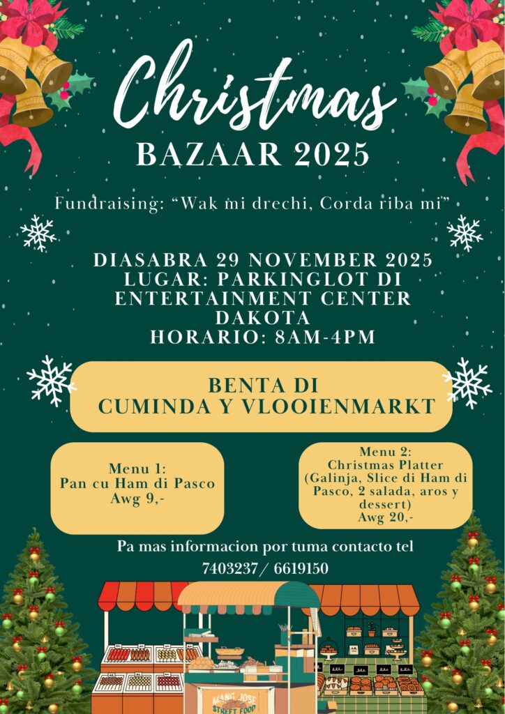 Diasabra 29-11-2025 for di 8 am te cu 4pm riba parking lot di Entertainment Center Dakota, nos ta warda abo y bo famia, pa presenta na bo cu tur amor posibel e Fundraising ; BUSCA MI DRECHI, CORDA RIBA MI.