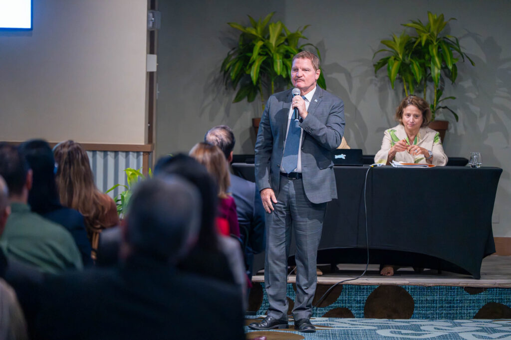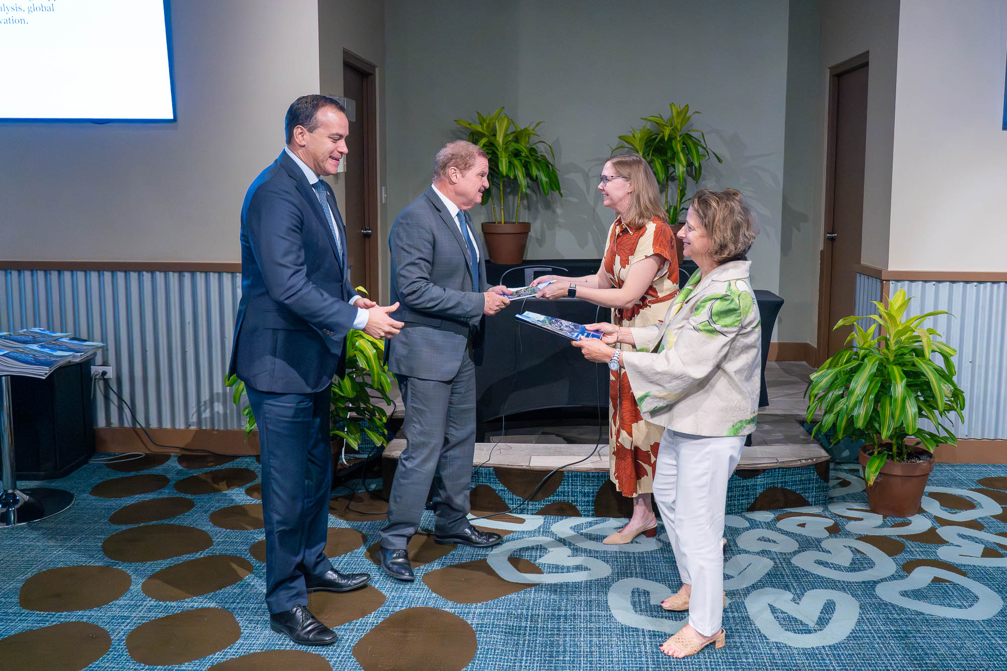 Prome Minister mr. Mike Eman conhuntamente cu Minister mr. Geoffrey Wever tabata presente na e presentacion di e rapport di Aruba Climate & Ocean Risk Vulnerability Index (CORVI). Gobierno di Aruba ta poniendo enfasis riba e direccion unda nos isla lo tin cu bay pa cuido di nos medio ambiente. Esaki lo encera cambionan basta importante unda cu lo haci nos pais mas sostenibel y haci nos mas isla reciliente pa cambio climatico.