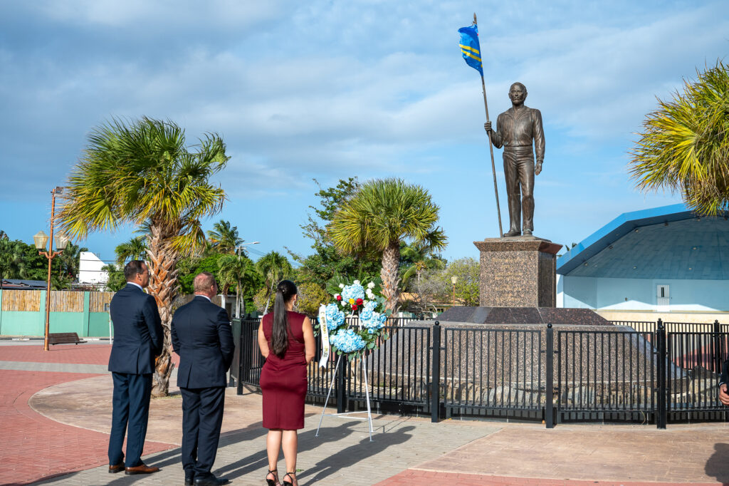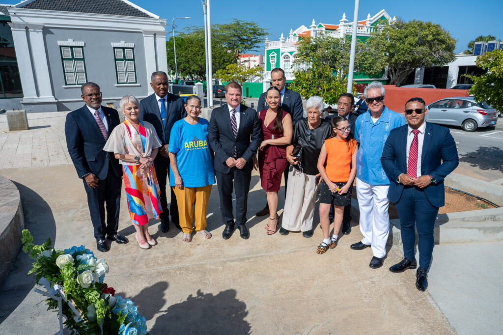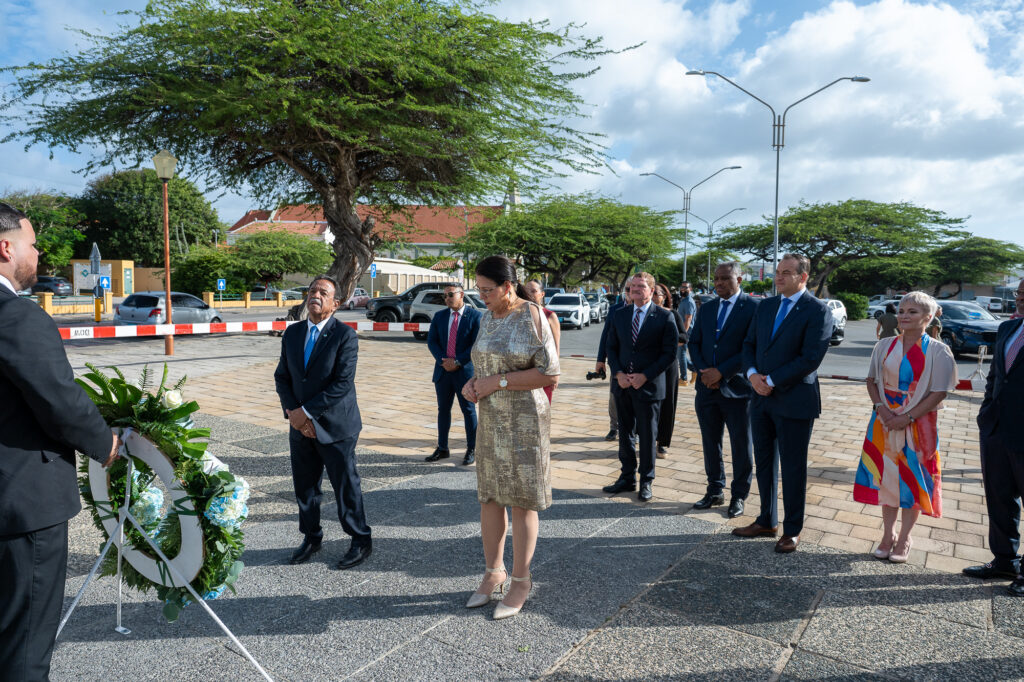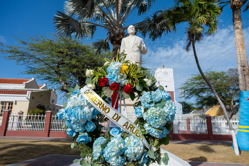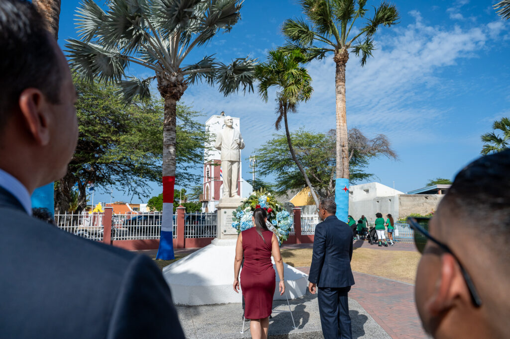 Den un ambiente di profundo respet y reflexion nacional, henter Gabinete AVP-Futuro, encabesa pa Prome Minister Mike Eman, acompaña pa Vice-Prome Minister Gerlien Croes, Minister Mervin Wyatt-Ras, Minister Geoffrey Wever, Minister Rene Herdé, Minister Wendrick Cicilia, Minister Arthur Dowers, Secretaria di Conseho di Minister Indra Hassel-Duarte y Presidente di Parlamento Marlon Sneek, a participa awe den un serie di acto solemne di ofrenda floral na diferente plaza historico rond di Aruba.