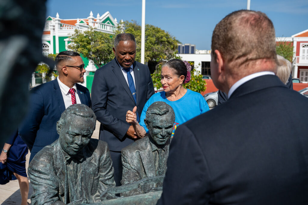 Na cada parada, e ministernan a rindi homenahe cu ofrenda floral, simbolisando unidad y reconocimiento na tur esnan cu a contribui na e trayecto historico di Aruba.