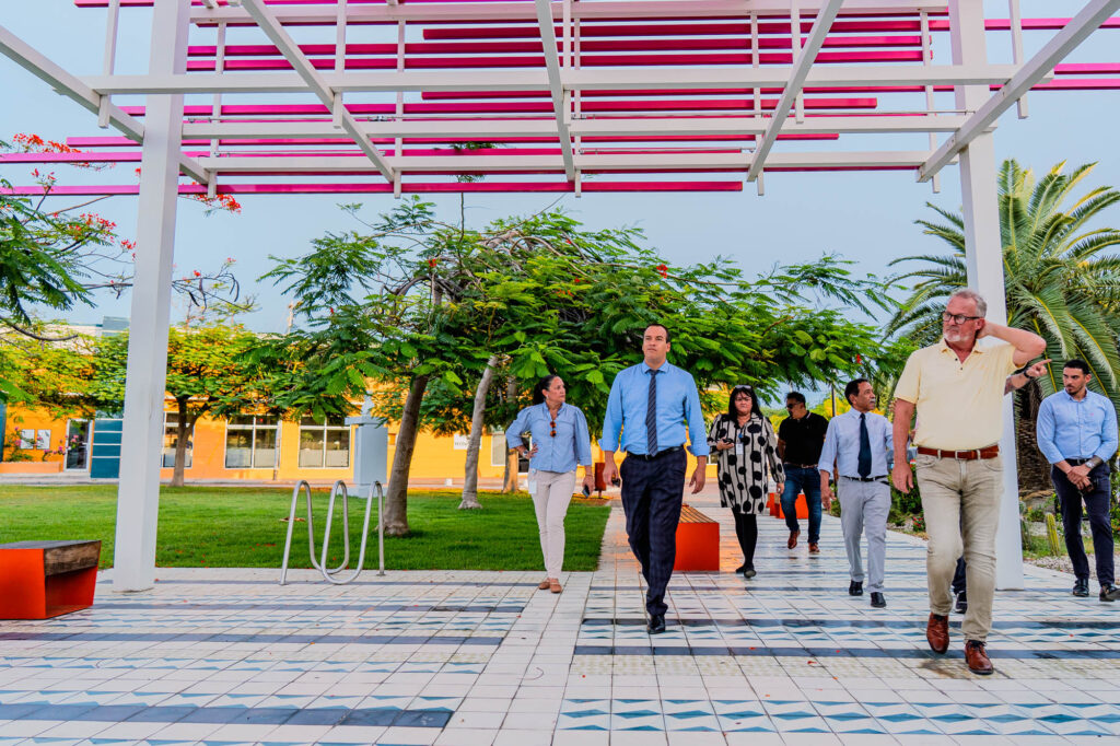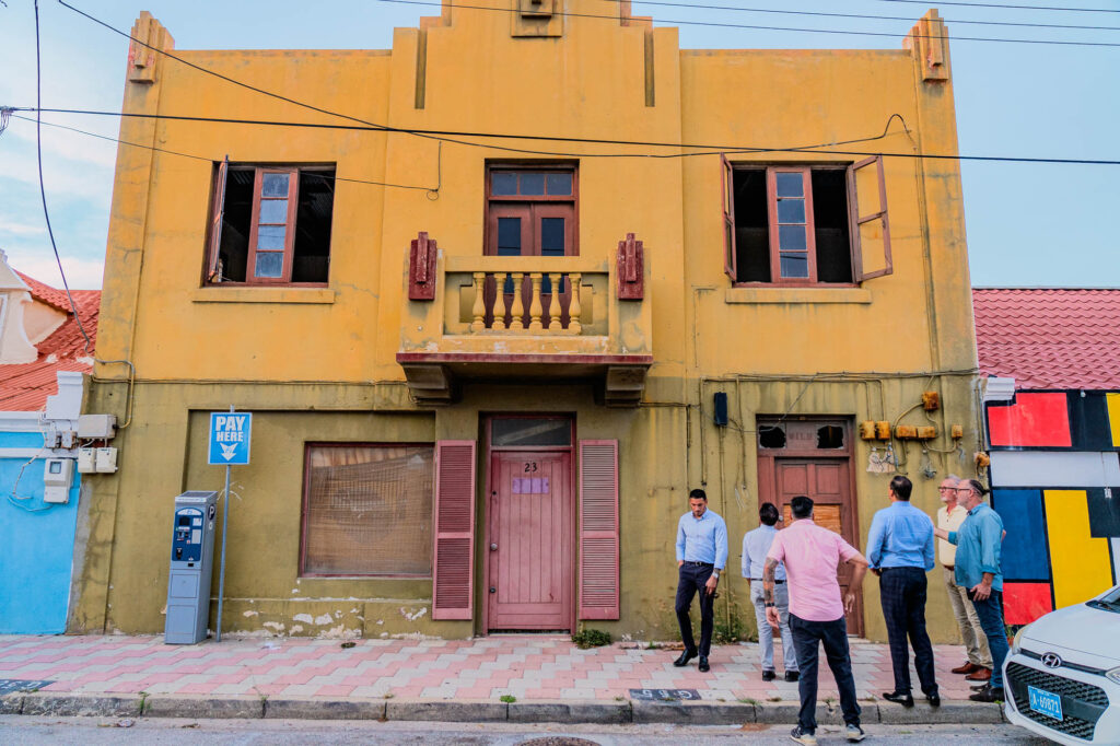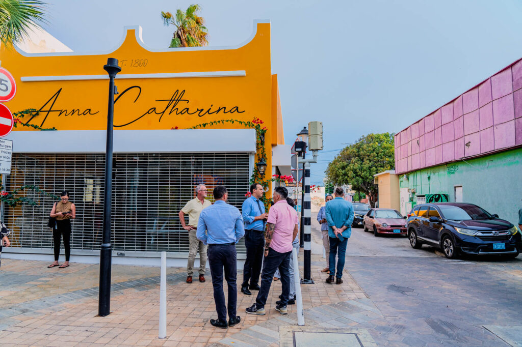 Durante e bishita, Minister Wever y Minister Herdé a reuni cu Elton Arends di 360 Innovation y Harry Koeman di Oranjestad Investment Group, pa haña un bista amplio di e diferente proyectonan y inversionnan cu ta wordo desaroya den e centro urbano.