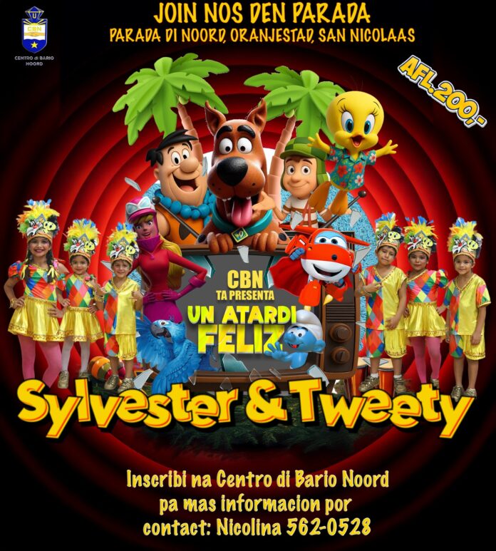 Nos tema di grupo di Carnaval ta “Un Atardi Feliz” y lo concentra e.o. riba comequitas. E tema di nos massa ta “Tweety y Sylvester”. Nos ta participando den tur 3 Parada di Mucha y participacion den massa ta Afl. 200,- pa cada mucha. Nos cede na Centro di Bario Noord ta habri di dialuna pa diabierna di 6or pa 9or di anochi. Pa mas informacion por tuma contacto cu Nicolina na 5620528.