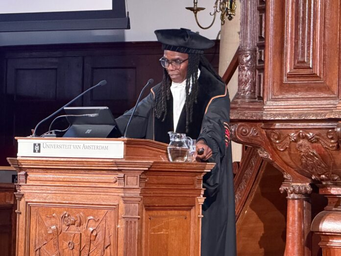 Prof. dr. Francio Guadeloupe, profesor extaordinario di Antropologia Publico di Relacionnan den Reino, a tene awe, diahuebs 12 di maart, su discurso inaugural na Universidad di Amsterdam (UvA). Guadeloupe a tene su discurso inaugural como titular di e catedra di Antropologia Publico di Relacion di Reino. Ministerio di Asuntonan Interno y Relacionnan den Reino (BZK) a crea e catedra aki na 2024.