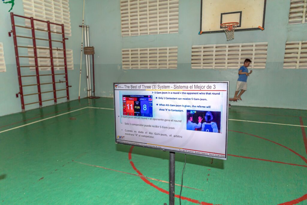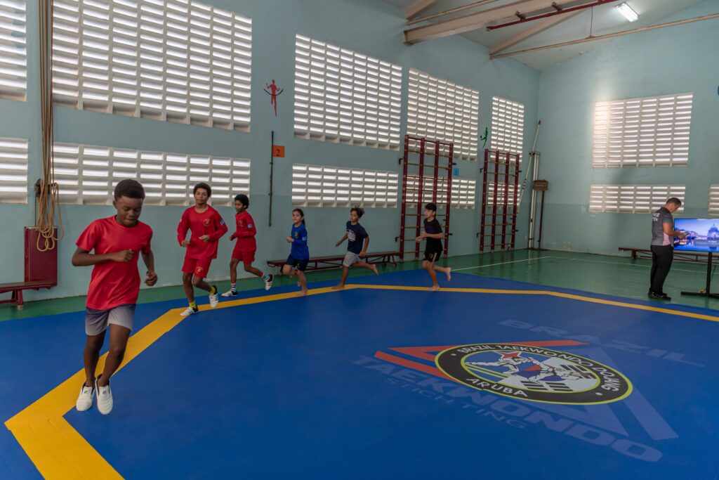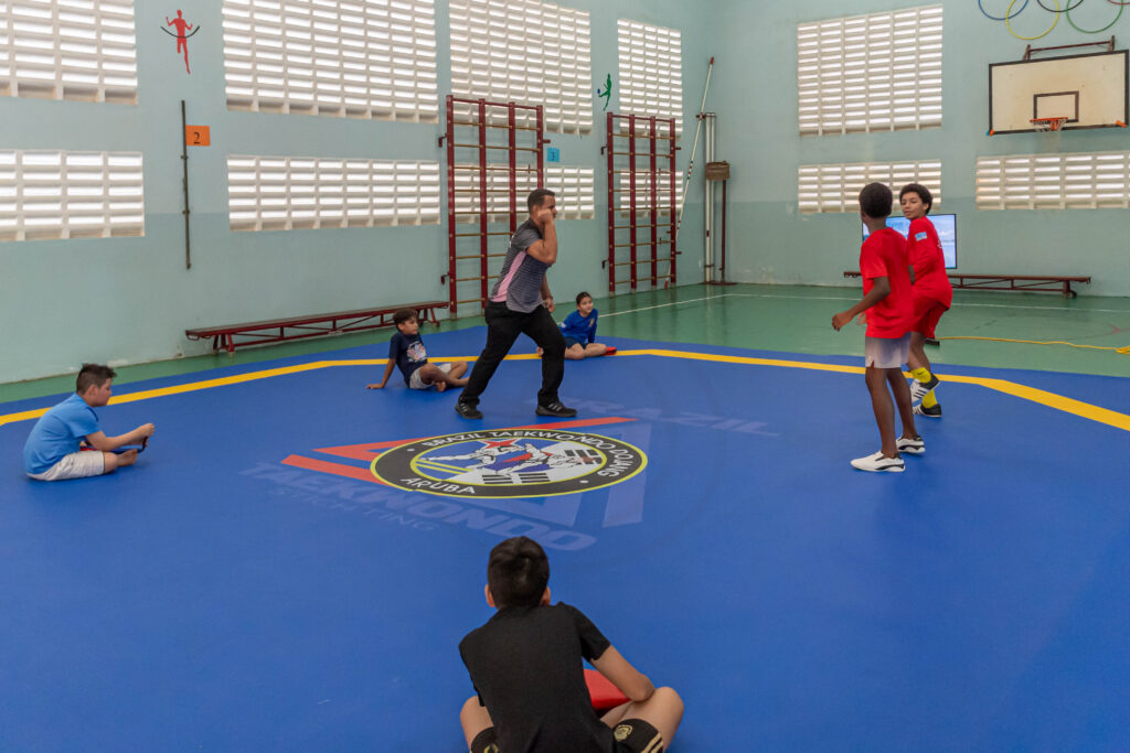 “combate” na algun di e atletanan di Taekwondo Team Aruba cu ta preparando pa 2026. Durante Best of the Best Powerade Cup 2025 a aplica e reglamentonan nobo di 2026 caba y a splica esakinan