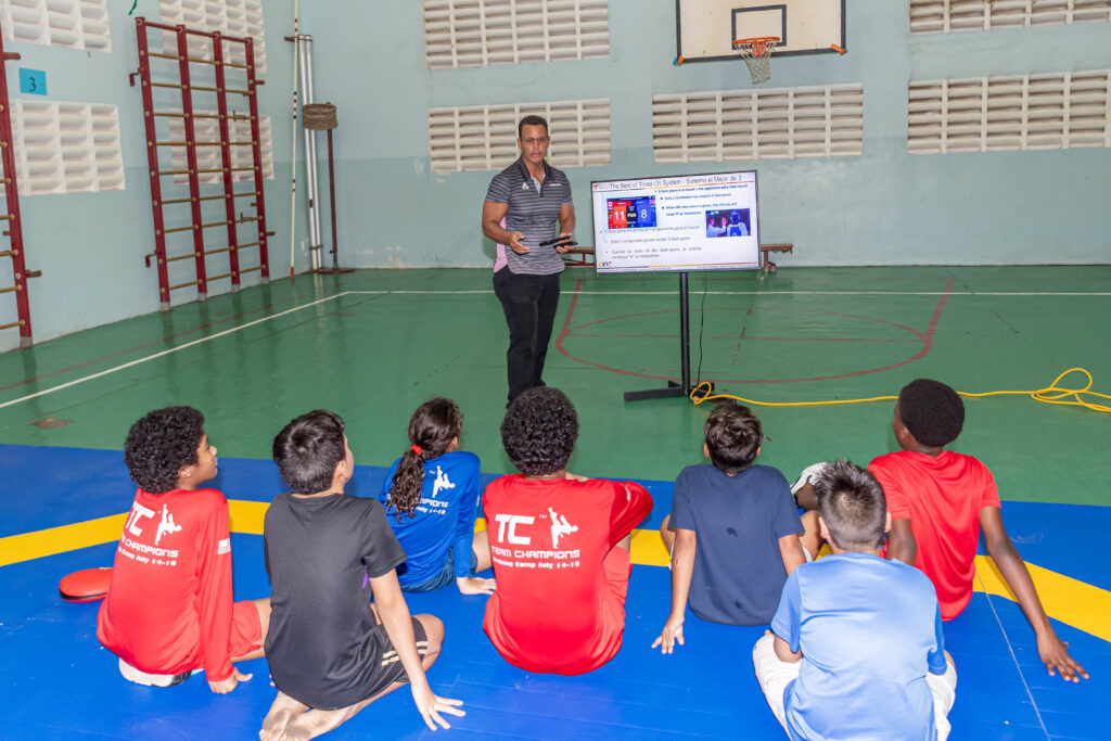 E atletanan tabata tin e oportunidad di train esaki ariba e maat oficial di Taekwondo.