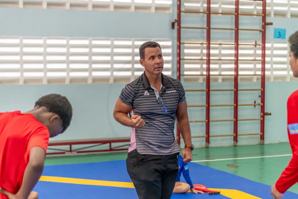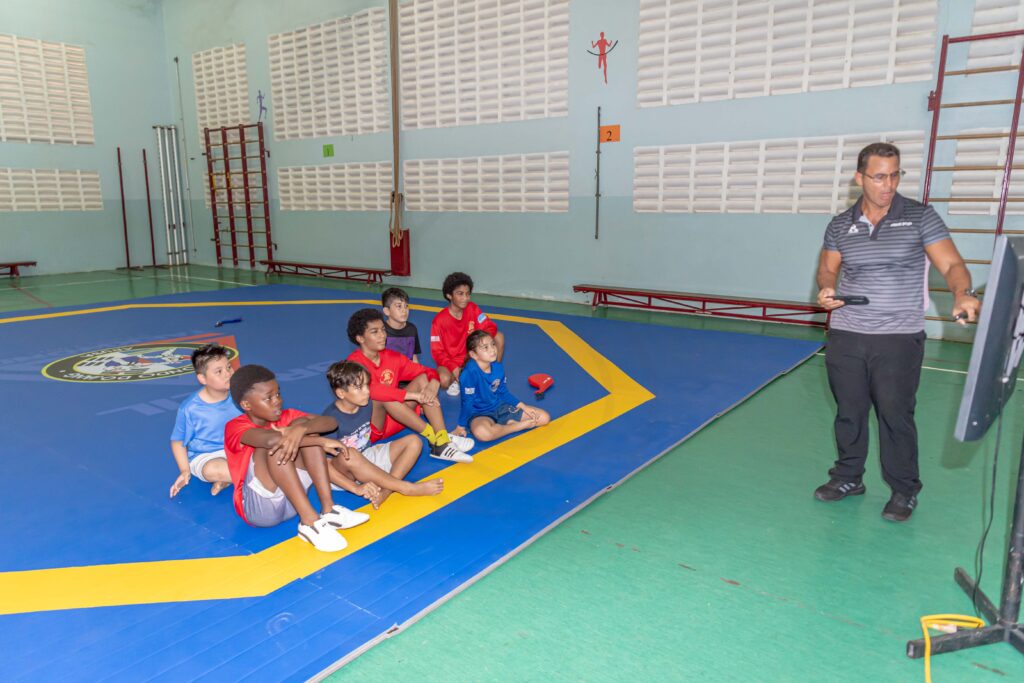 Durante training na Brazil Taekwondo Stichting den e dianan di fiesta, Guillermo Rodriguez a bolbe splica e reglamentonan nobo den teoria y practica na e atletanan presente cu a haci pregunta.