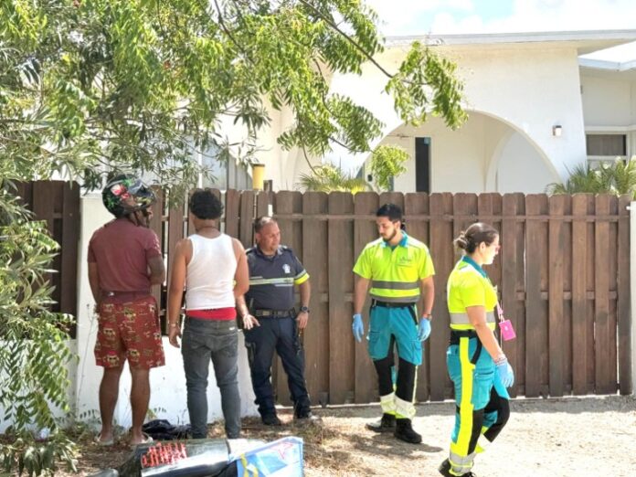 Ambulance a ser pidi y basta mas pariba di e sitio polis a topa cu e hoben sinta, y momento cu Paramediconan a presenta e hoben cu supuestamente lo tawata herida na garganta a nenga nan servicio