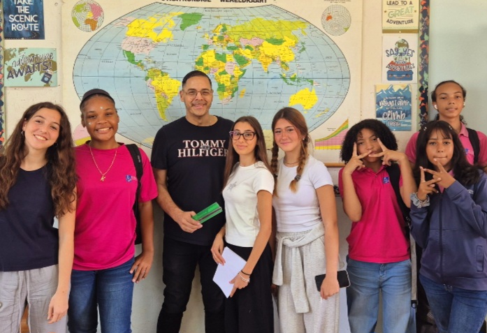 E siman aki Filomena College MAVO na San Nicolas, como e prome scol di Aruba cu e proyecto aki, tin bishita di 9 studiante Italiano. E grupo aki ta procedente di e scol secundario ISIS CHARLES DARWIN cu ta Istituto Statale di Istruzione Superiore di Roma. Nan ta acompaña pa dos maestro cu ta Antonio Sciortino y Eleonora Minelli.