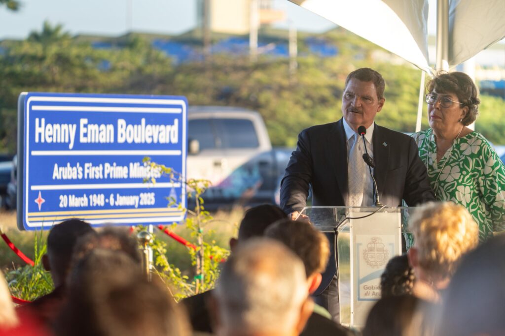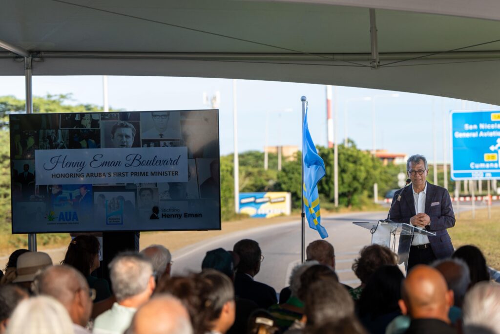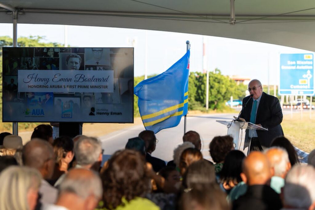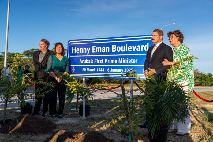 Dia 6 di januari 2025, Aruba a despedi di Aruba su prome Minister President sr. Henny Eman. Awe riba e mesun fecha, pero un aña despues, Gabinete AVP-Futuro, riba peticion di Stichting Henny Eman, a honra un visionario grandi den politica di Aruba nombrando un di e careteranan principal di Aruba na su nomber. Awe parti di e caminda conoci pa decada como L.G. Smith Boulevard cu ta inicia na e retonde di Mahuma te cu e retonde di Sun Plaza, ta bira oficialmente Henny Eman Boulevard. E caya largo aki ta pasa dilanti di Aeropuerto Internacional Reina Beatrix, dilanti di Parlamento di Aruba y e oficina principal di Gobierno di Aruba y conecta cu e area di turistico principal cu tabata parti di e vision di Henny Eman.