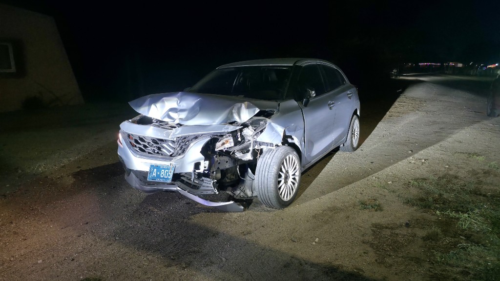 Dialuna marduga rond di 2’or y mey un automobilista ta topa un Suzuki Baleno ful kibra yegando rotonde di Tanki Leendert.