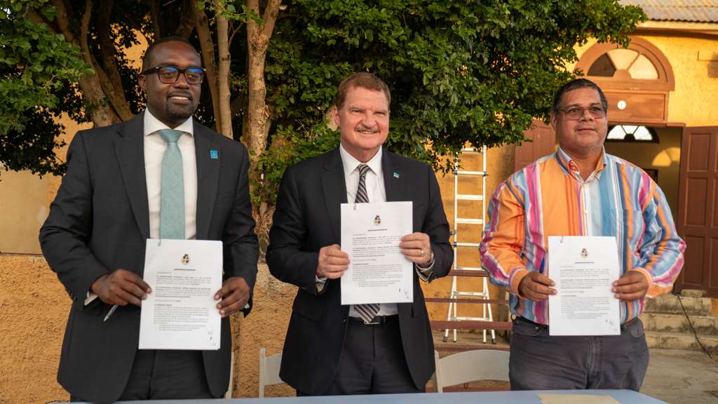 Un momento simbolico di e actividad tabata e colocacion di e seyo di monumento protegi, realisa pa Prome Minister Mike Eman hunto cu Pastor Sams y Raul Gei, sigui pa e firma oficial di e acuerdo cu lo guia e proceso di restauracion.