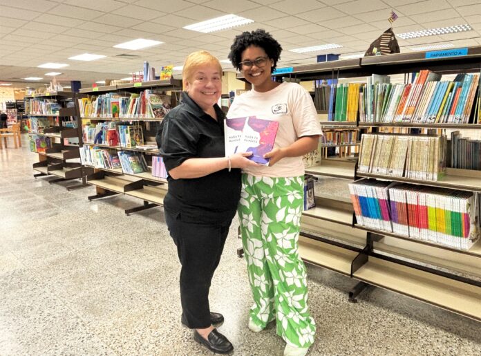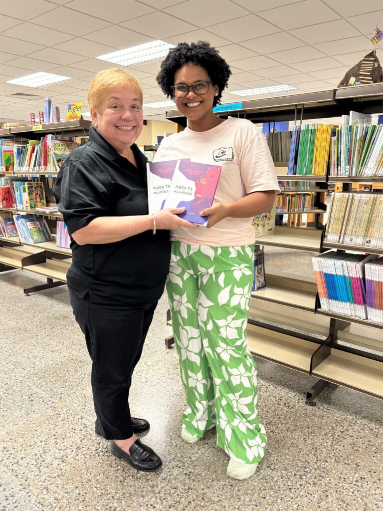 Un di e poetanan ta Katiuska Quiñones. Biblioteca Nacional Aruba a invita Katiuska pa ta parti di e Festival di Buki pa Mucha e aña aki. Katiuska tin diferente talento y ela bay duna presentacion na scol henter e siman aki. Nos ta hopi contento cu su bishita y su presentacionnan interactivo pa mucha. Katiuska sa di capta e atencion di e muchanan y keda den combersacion cu nan.