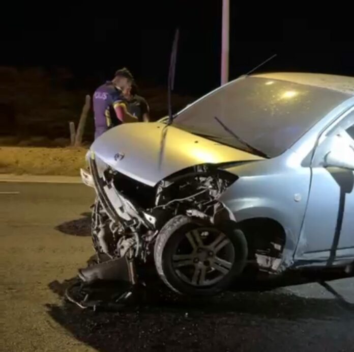 Na e sitio di e sucedido enberdad ta topa cu un auto Diahatsu Boon color silver y un chauffeur femenino herida. Prome informe ta indica cu e chauffeur lo a bay pasa auto y na un dado momento e lo a perde control.