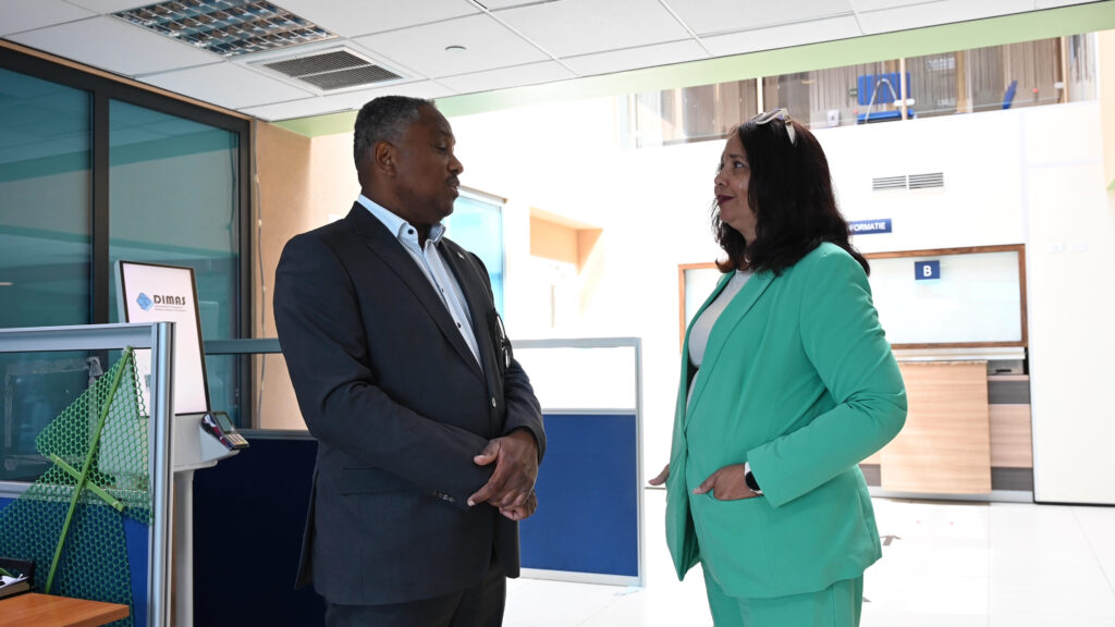 Diamars mainta, Minister di Husticia, Integracion, Transporte Publico y Energia, mr. drs. Arthur Dowers, a haci un bishita di trabao na Departamento di Integracion, Maneho y Admision di Stranhero (DIMAS). Durante e bishita aki, Minister Dowers a tene un reunion constructivo cu Directora di DIMAS Kathy Ruiz-Paskel.