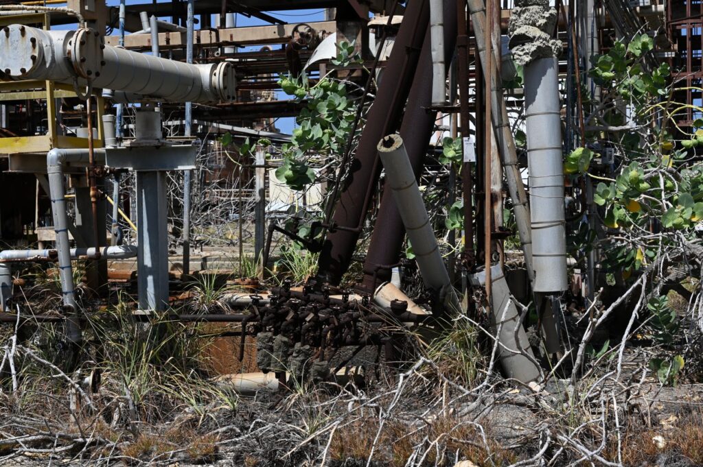 Ademas, e presencia di desperdicio residual, e fraccion mas pisa cu ta keda despues di refinacion di petroleo, y otro contaminacion industrial ta haci e area no apto pa uzo recreacional, hotelero of residencial. E prioridad actual ta pa sanea y despues decontamina e tereno principal di e refineria, un proceso tecnico compleho cu por dura mas cu 5 aña prome cu cualkier otro desaroyo por inicia.