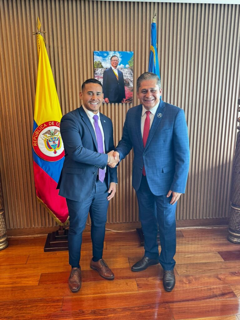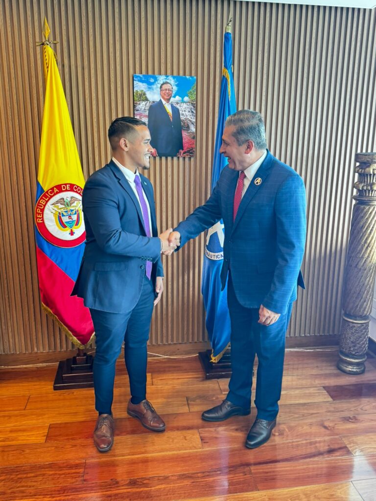 Minister di Turismo, Labor y Transporte mr. Wendrick Cicilia a reuni cu Director General di Aeronautica Civil Colombiano, Jose Henry Pinto.