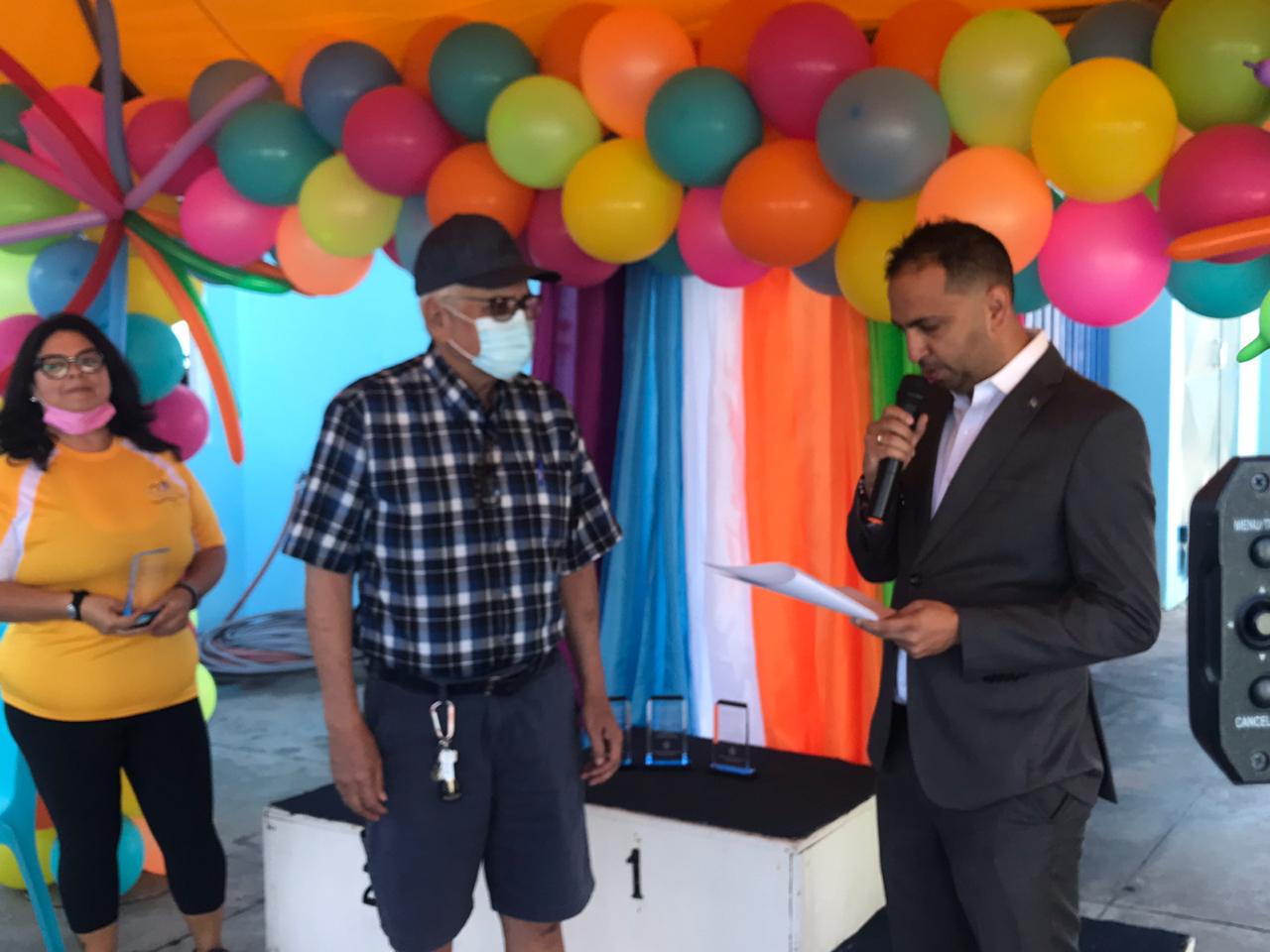 Minister di Deporte, Dangui Oduber tabata tey presente na Piscina Olimpico Roly Bisslik na un ocasion hopi special pa por a duna reconocimento na cuater Arubiano hopi ehemplar cu a duna gran parti di nan bida na e deporte di natacion.