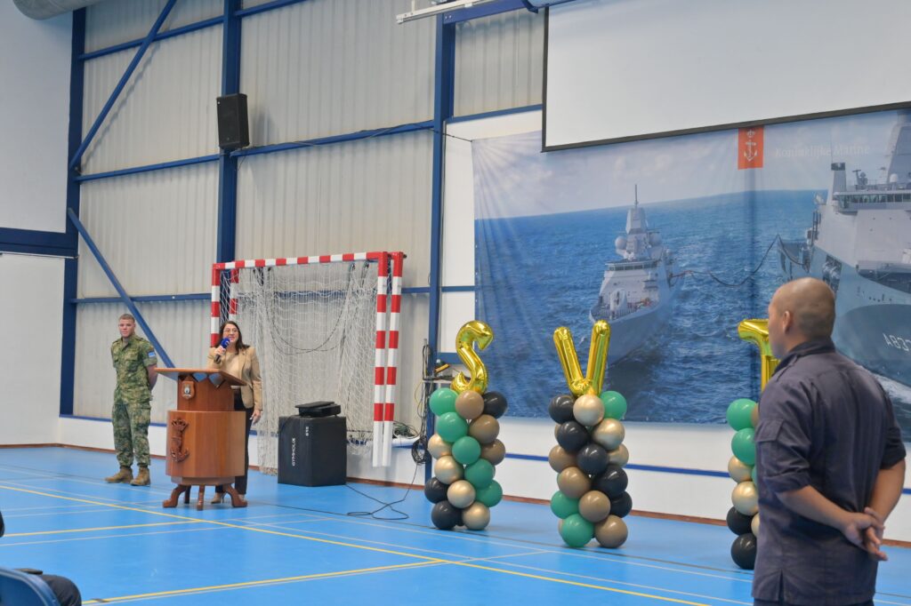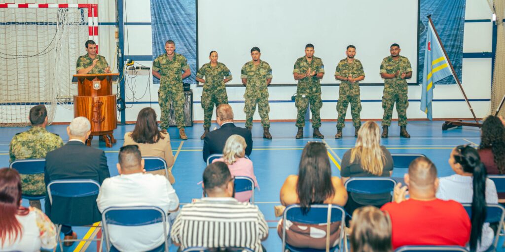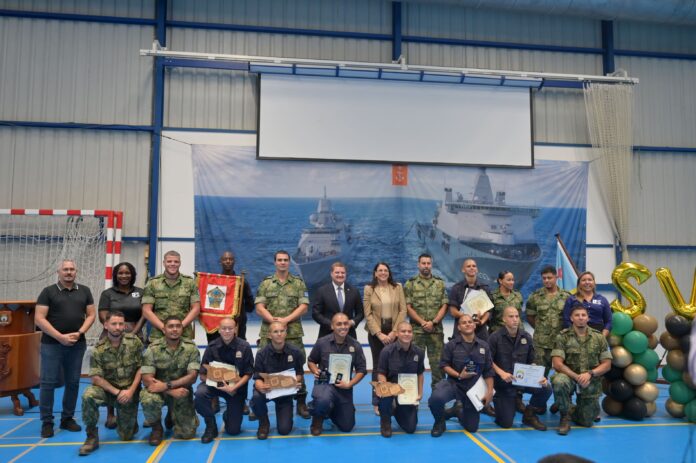 Kapitein Ligtvoet, Sergeant Croes, Sergeant Leito, Sergeant Corvacho, Korporaal Thijsen, Korporaal Arendsz, Marinier Koolman, tambe Coordinadora Jessica Ras y Trahado Social Nicole Godett di Formacion Social.