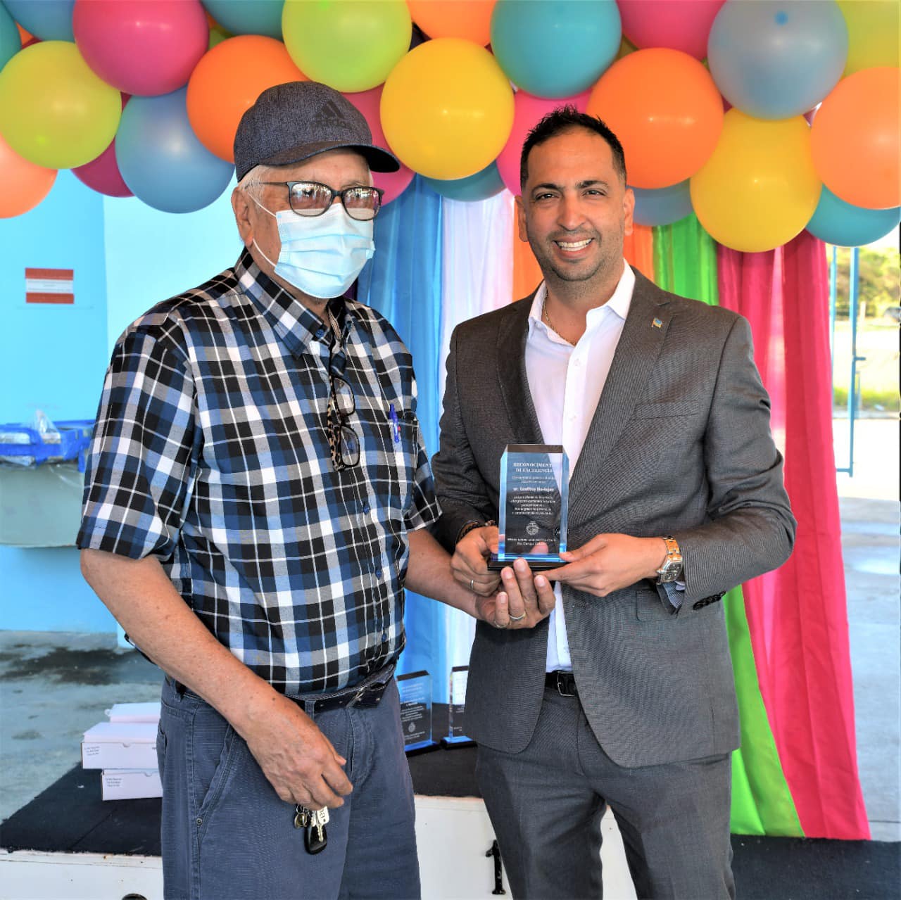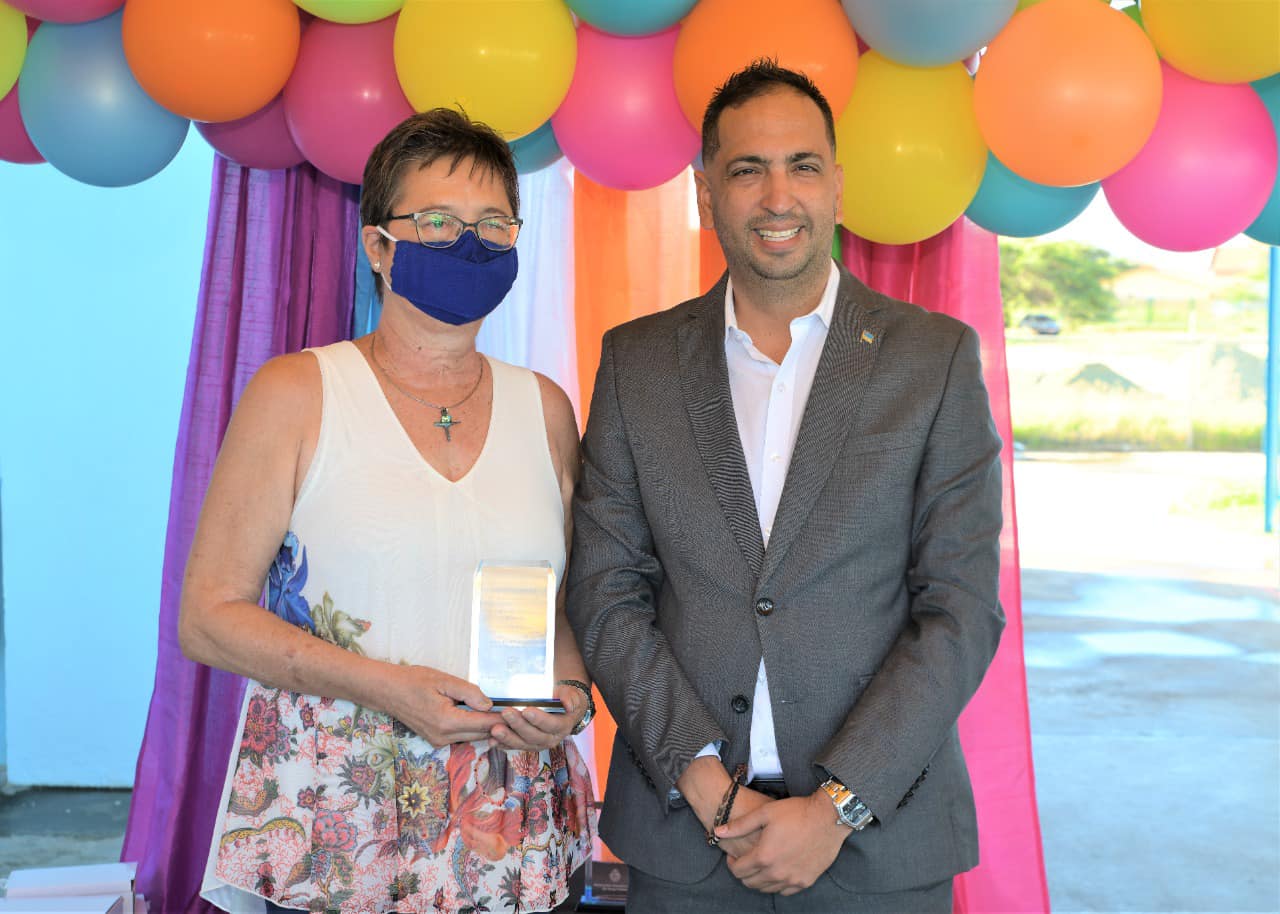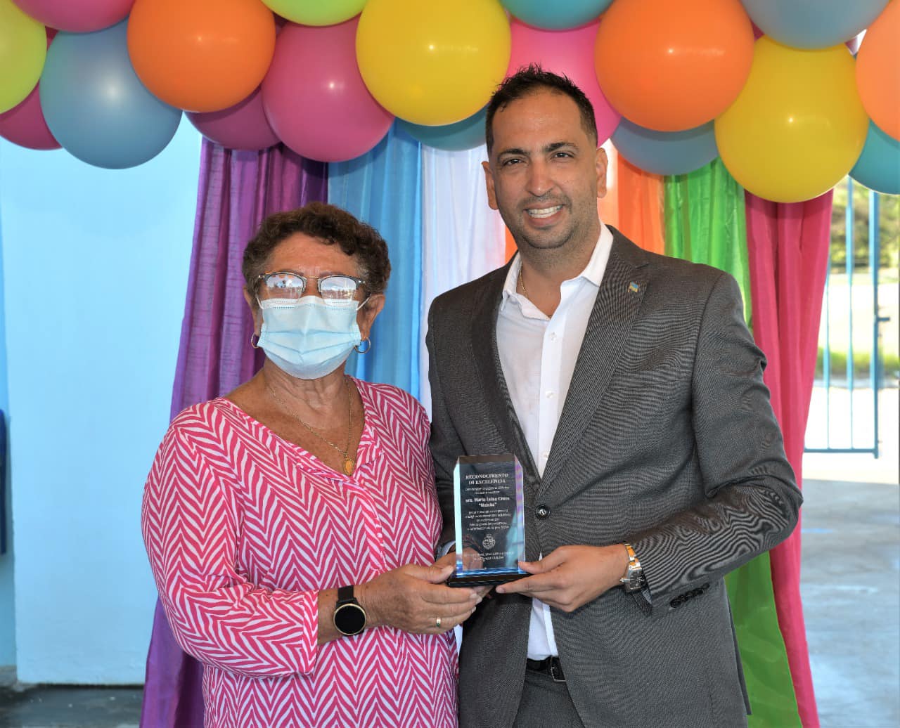 Pabien na tur cauter persona cu e bunita reconocimento aki. Y danki un bes mas Stichting Schoolzwemmen Aruba. Gobierno di Aruba ta gradici boso pa boso esfuerso, amor y dedicacion na schoolzwemmen. Boso trabou boluntario ta wordo grandemente aprecia pa nos gobierno.