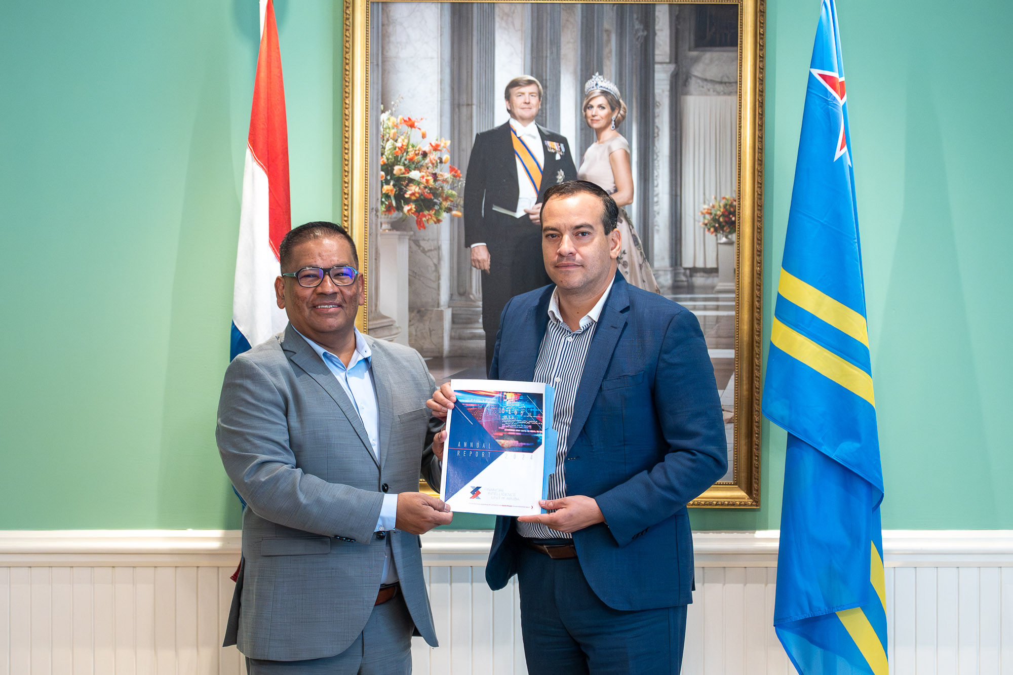 Minister di Finansa, Asunto Economico y Sector Primario, mr. Geoffrey Wever, a ricibi oficialmente e relato anual 2024 di FIU Aruba for di director, señor Angelo Brete. E relato a wordo publica un tempo pasa, pero diahuebs ultimo a duna Minister Wever un presentacion di e relato y a haci e entrega oficial. Segun Sr. Brete, e esencia di trabao di FIU Aruba ta pa contribui na integridad di nos economia. Integridad ta nifica pa tin un bon economia, pasobra e ta crea confiansa, ta atrae inversion limpi, locual ta sostene crecemento duradero.