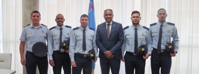 Mark Solognier, Comandante di Kustwacht Aruba, presente na e ceremonia di huramentacion, a felicita e 4 kustwachternan, cu ta forma parti di e klas 2024–2025. Nan tin algun tempo den funcion caba na Kustwacht, y cu e huramentacion oficial como Buitengewone Agent van Politie, nan por cumpli cu nan debernan cu mas autoridad y efectividad.