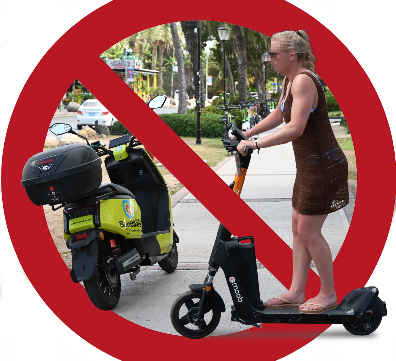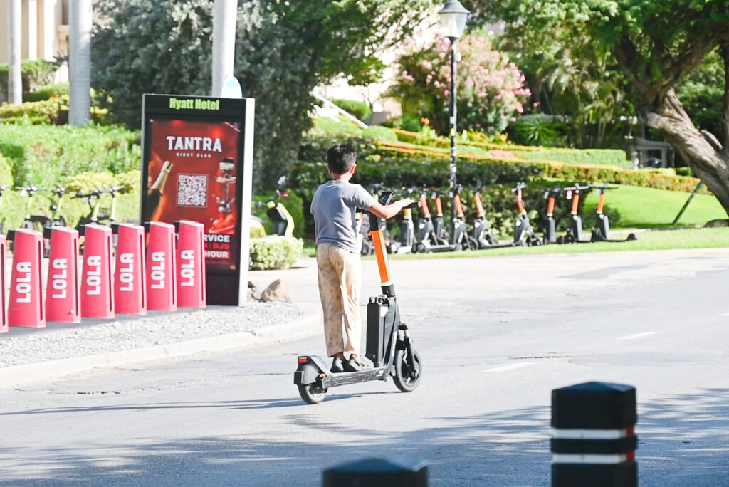 Specialmente den e area di hotel, e situacion ta evidente: decenas di step electrico, bicicleta electrico y hasta scooternan grandi electrico ta para riba acera, caminda y hasta unda peaton tin cu cana. E realidad aki ta pone presion riba infrastructura existente y ta crea riesgo directo pa siguridad di tur usuario di e espacionan publico.