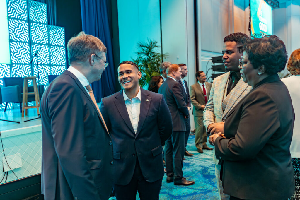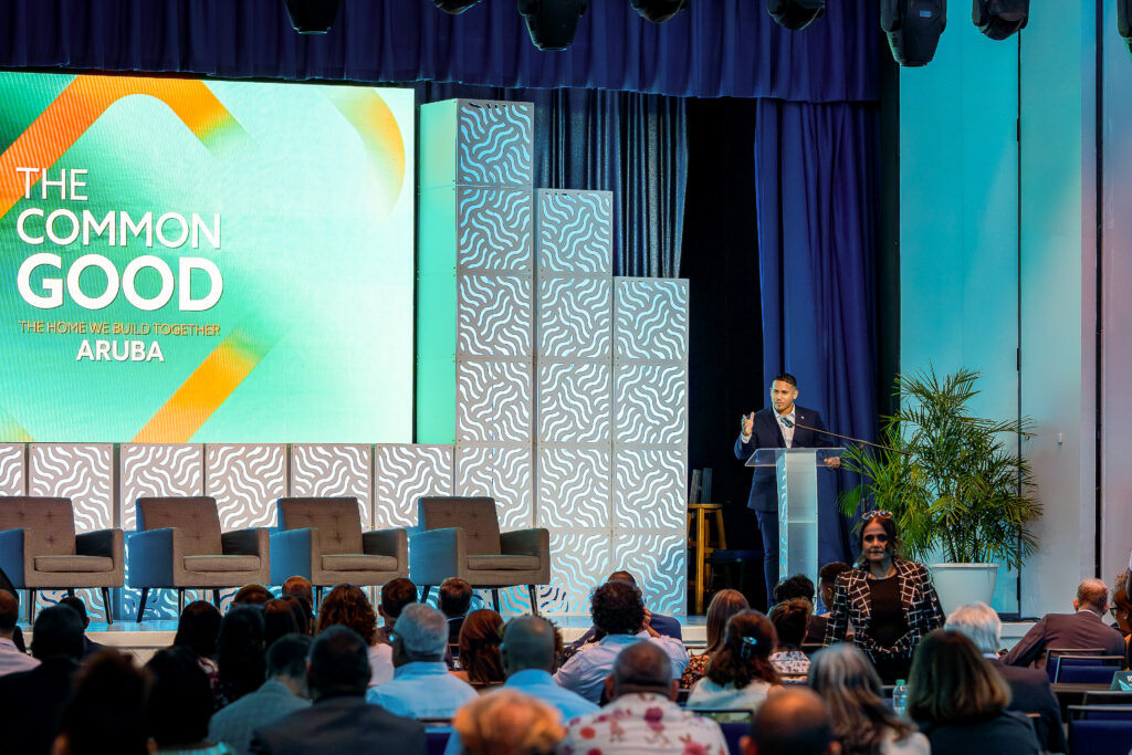 Minister di Turismo, Transporte y Labor mr. Wendrick Cicilia tabata e prome persona cu a duna discurso durante apertura di “The Common Good Conference” cu a hiba e tema “The Home We Build Together”.
