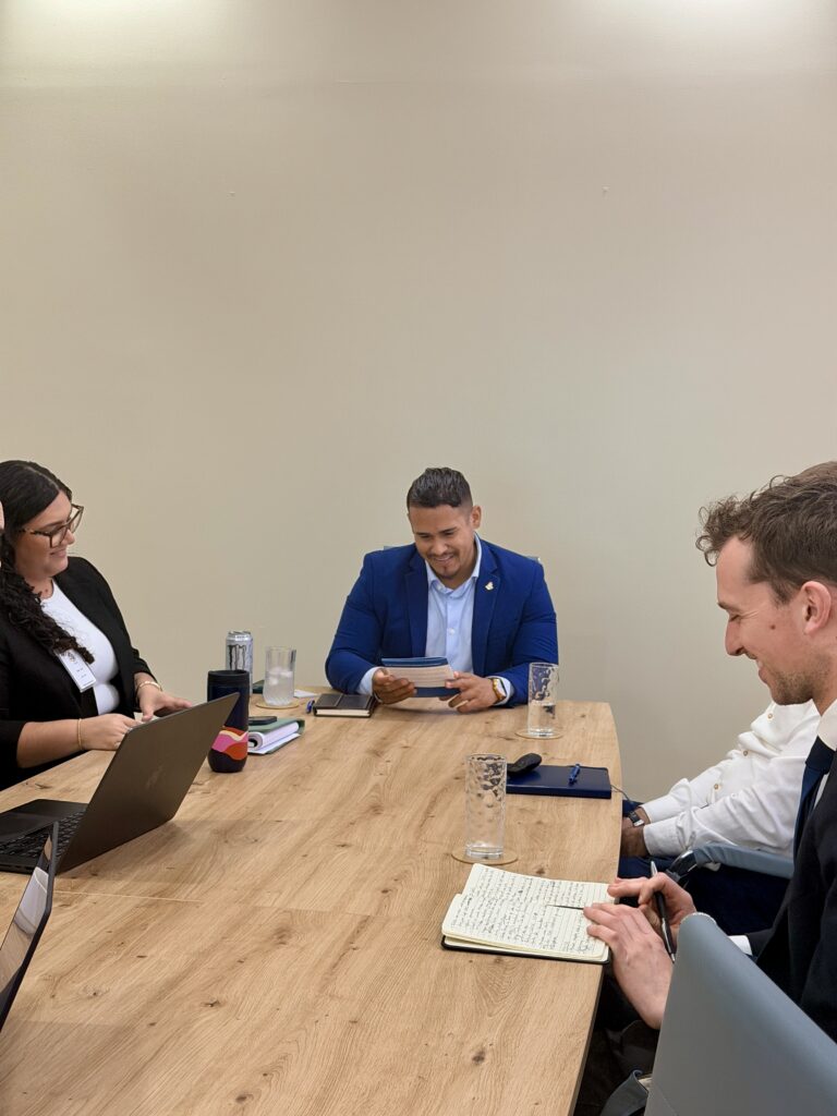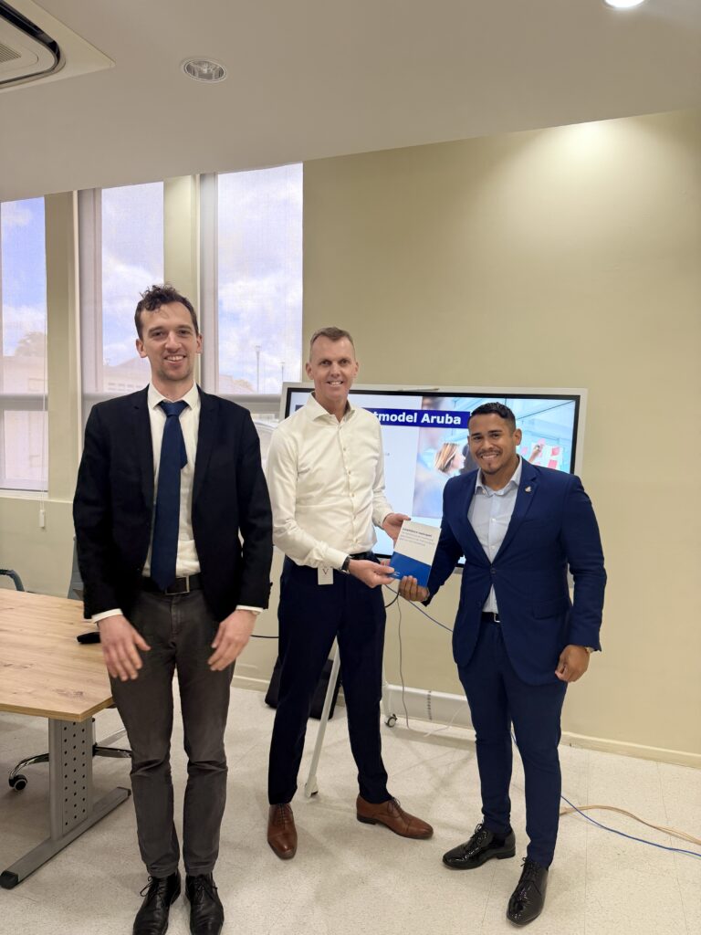 Den e cuadro aki, Minister Wendrick Cicilia a reuni cu expertonan di Economische Bureau Amsterdam pa coordina e desaroyo di un modelo cu lo pronostica e necesidadnan di mercado laboral na Aruba. E iniciativa aki ta representa un innovacion significativo den maneho laboral, posicionando Aruba entre e poco teritorionan denter di Reino Hulandes cu tin un herment asina.
