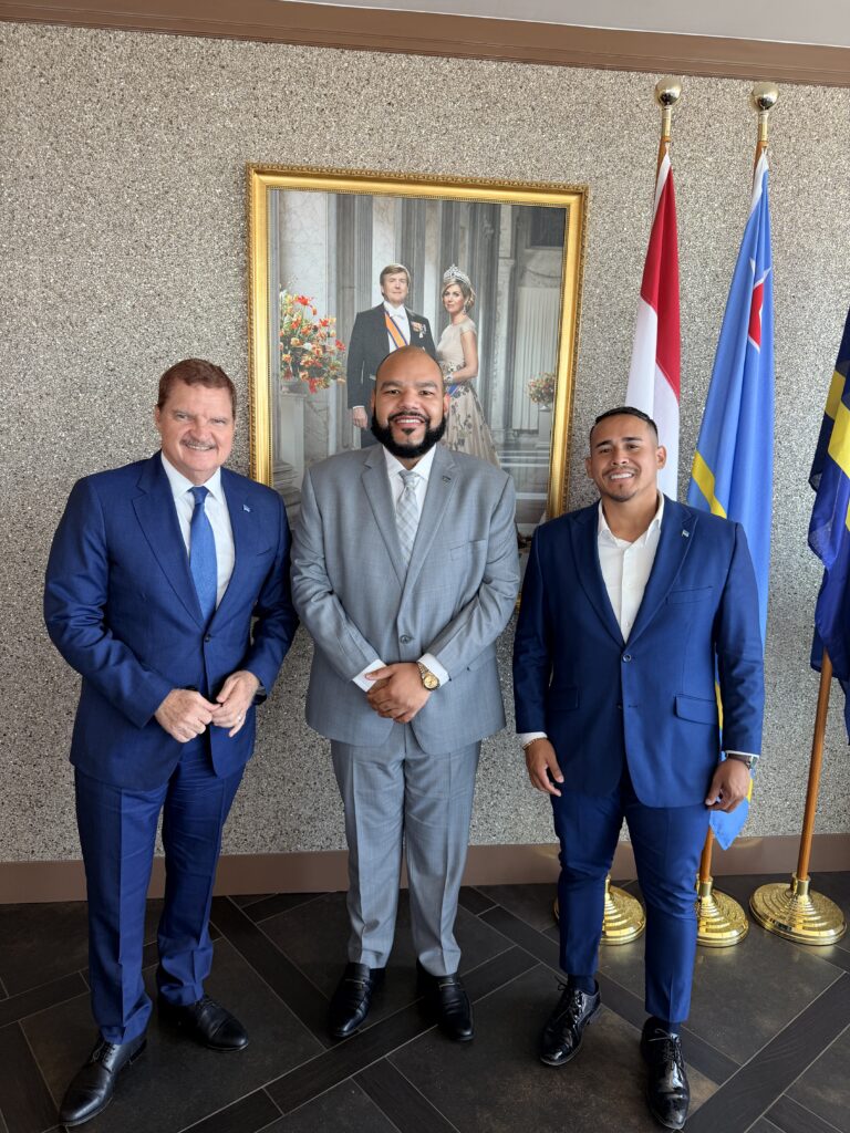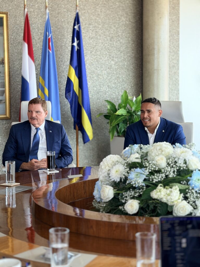 Den cuadro di un bishita oficial na Aruba, Minister di Desaroyo Economico di Corsou, Roderick Middelhof, tabatin un reunion cu Minister di Turismo, Transporte y Labor mr. Wendrick Cicilia y Minister-president Mike Eman.