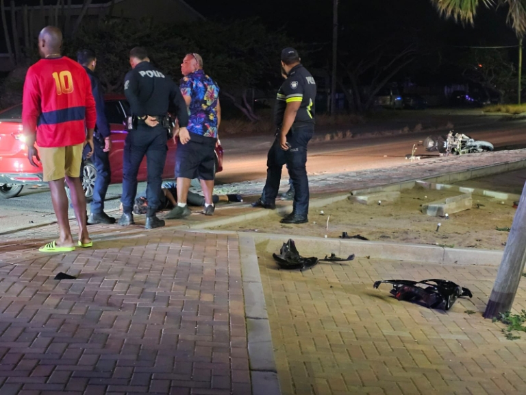 Tanto polis y ambulance a yega basta lihe y mesora a cuminsa duna asistencia y prepara e motociclista pa bay Hospitaal.