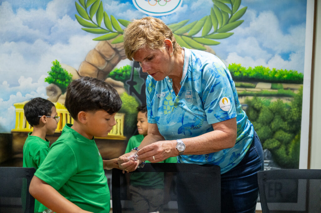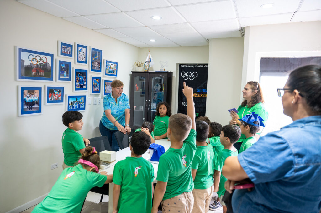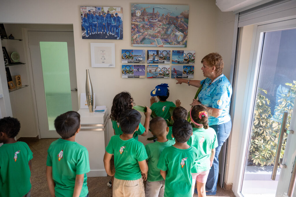 E bishita aki a conta cu gran entusiasmo di e muchanan, unda cu durante e recorido paden y pafo di e cas di COA, a ricibi un gran cantidad di pregunta sobre tur cos Olimpico. Hopi a indica di ta practica deporte y nan deseo di algun dia tambe por ta un atleta cu por representa Aruba y cu gana di bay e Weganan Olimpico. Durante e bishita a conta e diferente storianan di e inicio di e Weganan Olimpico antiguo cu a cuminsa mas di 3000 aña pasa na Olympia, Grecia te cu conta e trabou cu nos atletanan actual ta haci pa por yega na e escenario internacional. Finalmente, a duna un splicacion di e antorchanan y nan rol dentro di e Weganan, cu sigur a hala atencion di e muchanan. Pa termina e bishita, a regala cada mucha un pin di COA, pa asina nan semper tin un recuerdo di nan bishita.