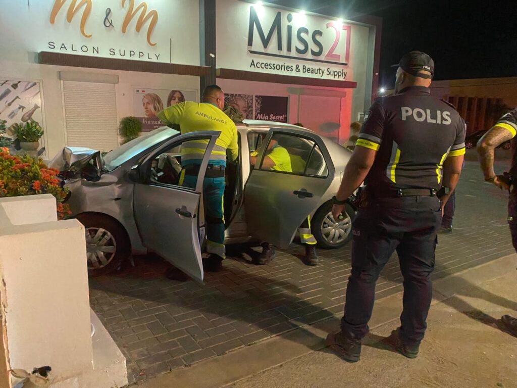 Diasabra anochi a drenta informe di un accidente cu hende herida dilanti e Misa na Tanki Leendert, mesora a dirigi tanto polis como ambulans na e sitio. Na yegada di e patruya a bin compronde cu aki ta trata di un accidente unda un chauffeur di un Toyota Yaris bayendo pariba no a regula su velocidad ni a mantene distancia a bay dal tras di un Hyundai Tucson djey kita bay den banda hera bay dal riba muraya di un negoshi. Debi na e impacto ambos chauffeur a resulta herida. Un di nan a ser atendi na e sitio mientras e otro a ser hiba hospital.