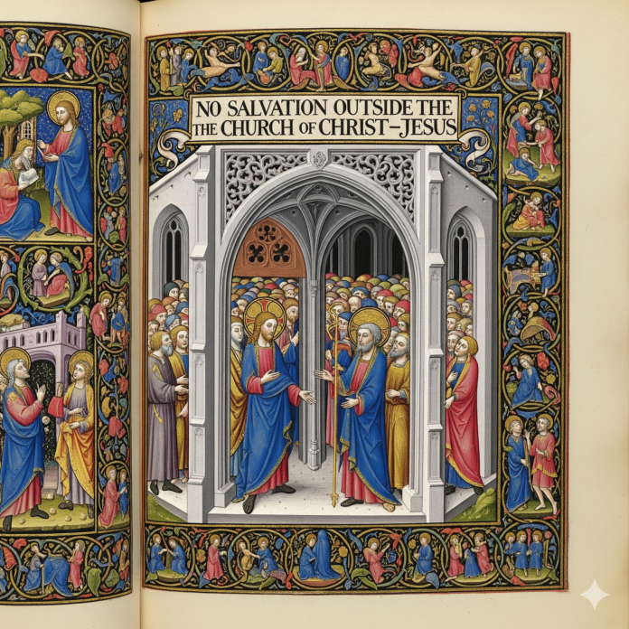 Tin sectanan ta bisa, cu salbacion no ta bini di Iglesia. Bijbel ta bisa den Efesionan 1: 22-23; “Dios a pone tur cos bao di pianan di Cristo y E’l a pone Cristo como cabes di Iglesia, na cual ta Su Curpa. Plenitud di Esun cu ta realisa tur cos den tur.” Bijbel Colonsensenan 1: 18: “Cristo ta cabes di E curpa, esta di Iglesia. E ta origen di tur cos, Esun prome cu a lanta for di morto, pa asina E ta Esun prome den tur cos.” Iglesia ta E curpa di Cristo, pa sigi cu e mision di salbacion di Cristo. Den Bijbel Mateo 28: 19-20, akinan Hesus a manda Su apostelnan, pa haci henter e nacion discipelnan di Hesus y e mision aki ta universal, pa henter mundo. Pesey Iglesia di Hesus, mester ta universal y universal ta nifica Catolico (mira den woordenboek). Hesus a institui Su doctrinanan, pa Su Iglesia cumpli cu nan. Bautismo Mateo 28: 19-20, Eucaristia Lucas 22: 19-29, Confirmacion Echonan di Apostelnan 2: 1-4, Reconciliacion Huan 20: 23, Matrimonio Mateo 19: 4-6, Sacerdotal Marco 3: 13-19, Enfermonan Hacobo 5: 14-15. Den Bijbel Mateo 16: 15-19: “Hesus ta puntra Su apostelnan: Anto boso mes, ta ken boso ta bisa Mi ta? Simon a contesta: Bo ta E Mesias, E Yiu di Dios bibo! Hesus a bis’e: Felis bo ta Simon yiu di Huan, pasobra no ta hende a revela bo esaki, ma Mi Tata cu ta den Cielo. Mi ta bisa bo: Abo ta Pedro (o sea baranca) y riba es baranca aki, lo Mi lanta Mi Iglesia y forsanan di fierno lo no podera di dj’e. Lo Mi duna bo e yabinan di Reino di Cielo y loke bo prohibi na tera, ta prohibi den Cielo tambe y loke bo permiti na tera, lo ta permiti den Cielo tambe.” Akinan Hesus ta bisa bon cla, Mi Iglesia, o sea un solo Iglesia. Forsanan di fierno, ta e demonionan den fierno cu lo bin cu diferente institutonan di sectanan, pa podera y pa kibra e Iglesia di Hesus, pero nan lo no logra. Hesus a duna Simon e nomber Pedro, cu ta significa baranca, o sea cabes visibel di Cristo Su Iglesia. Hesus a duna Pedro e yabinan di Reino di Cielo, esaki ta e yabinan pa e porta di Reino, o sea cu e Iglesia Universal di Cristo ta e unico caminda pa e Reino di Cielo. Tocante e yabinan di Reino di Cielo, por lesa den Bijbel Revelacion 21: 10-14, cu ta bisa di e ciudad Santo di Herusalem cu ta bahando for di Cielo briyando di Dios Su Gloria. E muraya di e ciudad tabatin 12 piedra di fundeshi grandi y ribanan e 12 nombernan di e 12 apostelnan di E Lamchi tabata scirbi. Esaki ta e 12 yabinan di e 12 portanan di Reino di Cielo, na unda e 12 nombernan di e apostelnan ta scirbi. Hesus a duna autoridad na Pedro, pa dirigi Su Iglesia, loke ta permiti y di loke ta prohibi. Den Bijbel Marco 16: 15-16, Hesus ta bisa Su apostelnan: “Pasa rond mundo y predica e bon noticia na henter humanidad. Esun cu kere y bautisa, lo ta salba, ma esun cu no ta kere, lo ta condena.” Compronde bon, cu tur e humanidad di mundo y hasta e Hudiunan mes, nan mester kere den Cristo Hesus y nan mester drenta den Iglesia Universal di Hesus y ser bautisa, pa nan por ta salba y pa nan por drenta den Reino di Cielo. Awor, den Bijbel Efesionan 1: 22-23 y Colosensenan 1: 18, ta bisa, cu Iglesia ta Curpa di Cristo y Cristo ta cabes di Iglesia, cu ta Su Curpa. Y den Bijbel Mateo 16: 15-19, Hesus ta bisa Simon: “Abo ta Pedro y riba es baranca aki, lo Mi lanta Mi Iglesia.” Akinan ta un Iglesia tin. Den Bijbel Mateo 28: 19-20, akinan Hesus ta bisa, cu Su Iglesia mester ta Universal, pa henter mundo. Lesa Bijbel Echonan di Apostelnan 20: 28-30, na unda San Pablo ta bisa, cu lo bini lobonan feros, o sea sectanan, iglesianan y religionnan falso cu lo bini cu doctrinanan robes, pa kibra e unico Iglesia cu Hesus a gana cu Su propio Sanger. Compronde bon, cu na anja 1521, un tal Martin Lutero un teologo protestant aleman, a bin cu doctrinanan robes y enterpretacionnan liber y falso di Bijbel. Y asina aki a bin hopi divisionnan y a lanta diferente sectanan y religionnan falso na mundo, ganjando hopi hende y buscando hendenan debil den fe, pa cai den nan trampanan di condenacion. Pesey, no tin salbacion pafor di Iglesia Universal.
