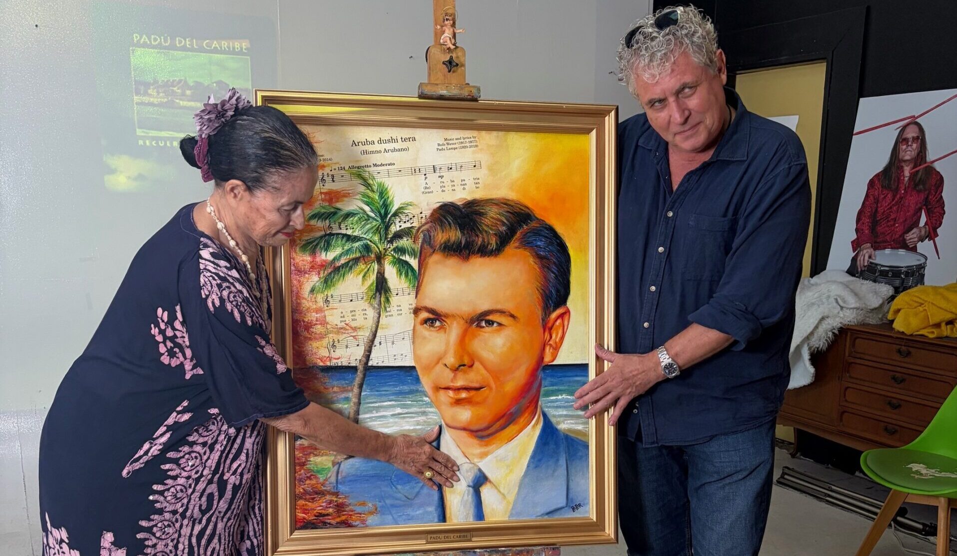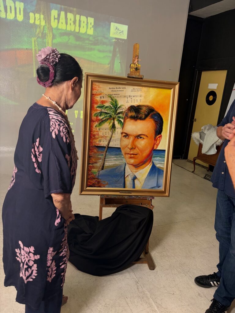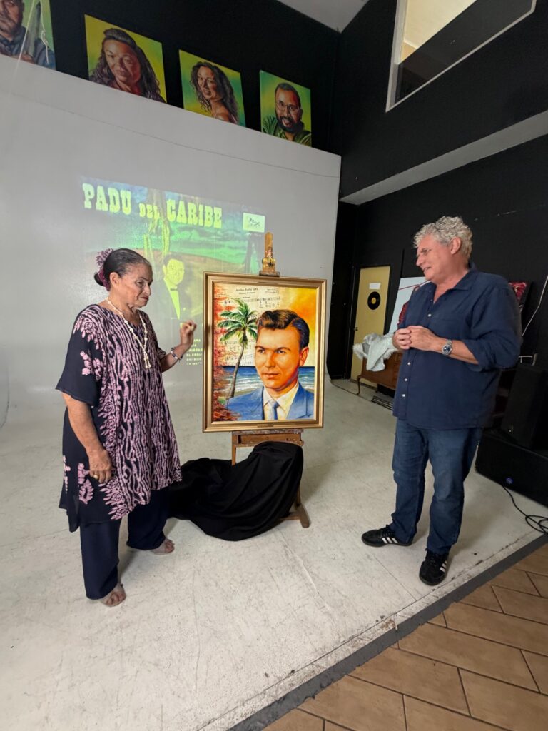 Den un ambiente ameno y informal na Checkpoint Color, e artista Peter van den Heuvel hunto cu Vivian Lampe a revela un retrato special pa honra e memoria di e defunto Padu del Caribe. E pintura aki ta un homenahe na e homber considera como e Tata di Cultura di Aruba.