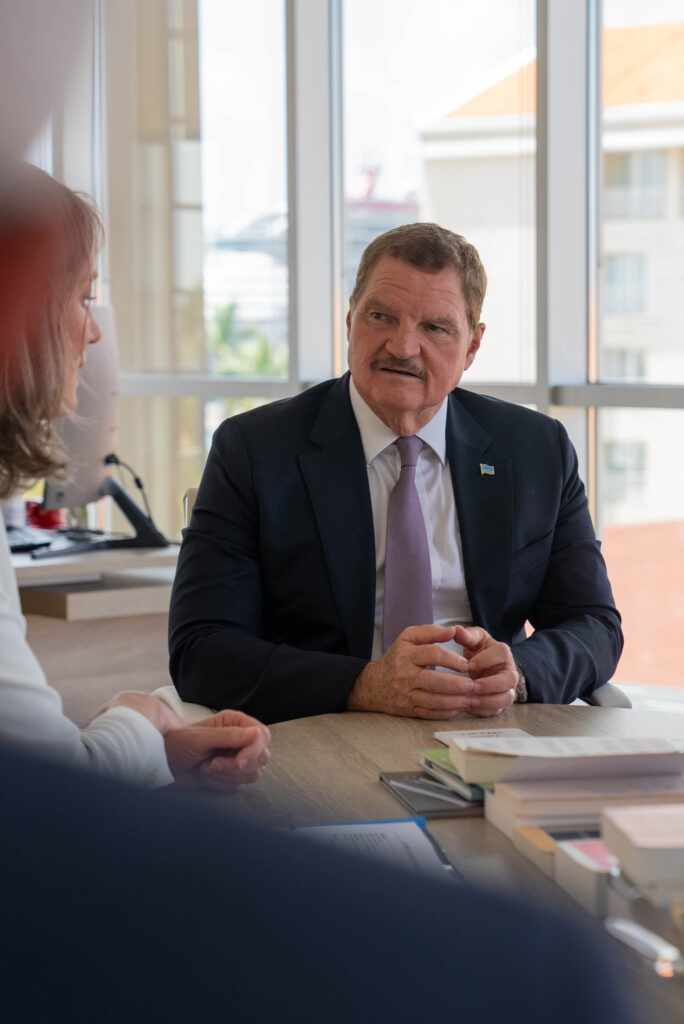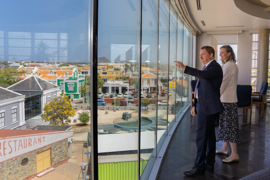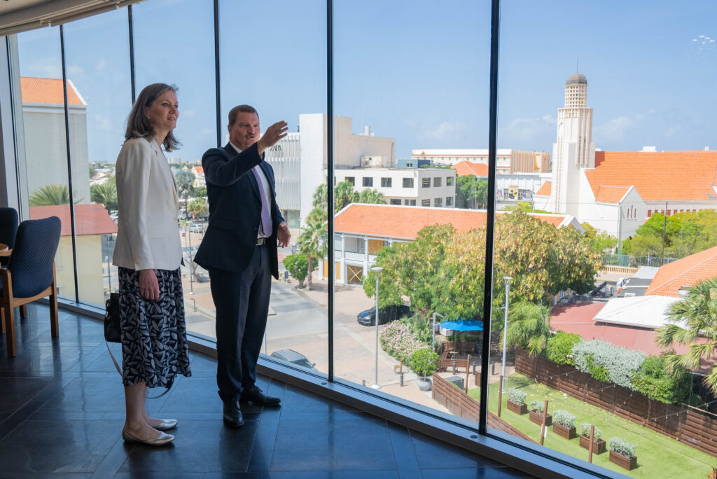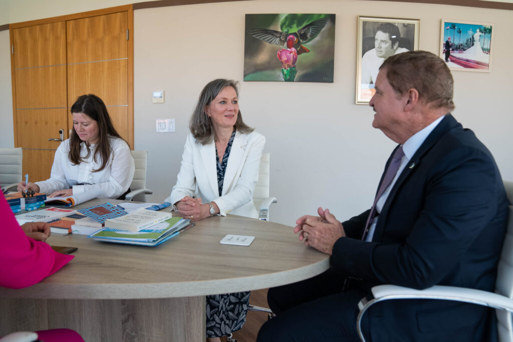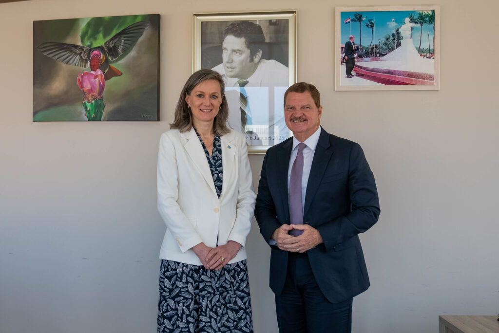 Prome Minister Mike Eman a ricibi awe Lise Gregoire-van Haaren, cu ta representante permanente di Reino Hulandes na Nacionnan Uni na New York, den un bishita oficial na Aruba. E encuentro a enfoca riba fortalecemento di cooperacion entre Aruba y e representacion di e Reino na Nacionnan Uni, cu enfasis riba desaroyo sostenibel, proteccion di medio ambiente y oportunidadnan pa colaboracion internacional.