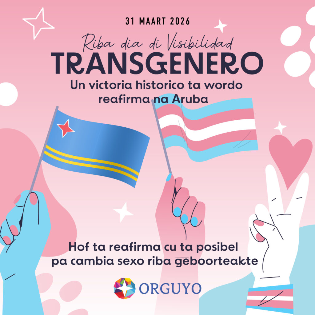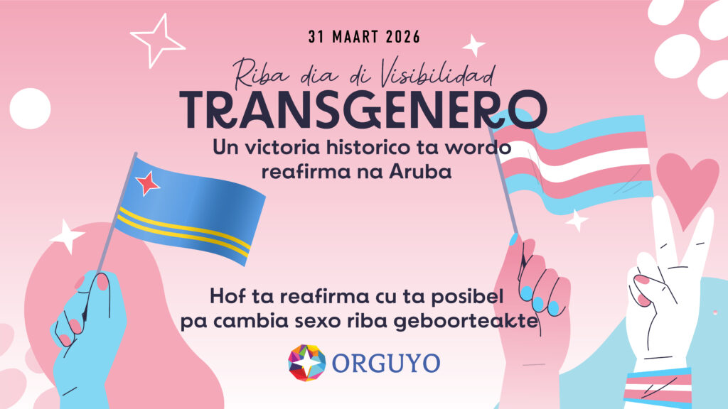 Dia 31 di Maart 2026, riba e mesun dia cu mundo ta conmemora International Transgender Day of Visibility, Fundacion Orguyo Aruba ta expresa su profundo alegria y satisfaccion cu un decision historico di e Corte Comun di Justicia (Hof). Esaki despues cu Censo a apela un decision di Corte di Prome Instancia di Aruba, na unda cu Corte ta dicidi na honra un peticion di un persona transgenero pa cambia su sexo riba su acta di nacemento.