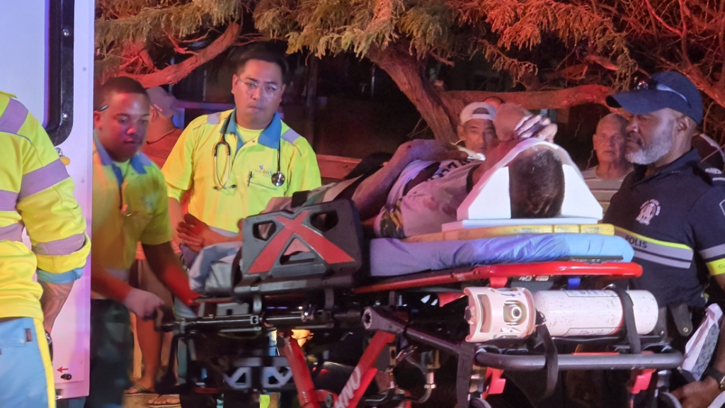 Paramediconan a actua mesora y a lanta e victima, un homber di edad cu tawata actua stranjo y a pone den ambulance.