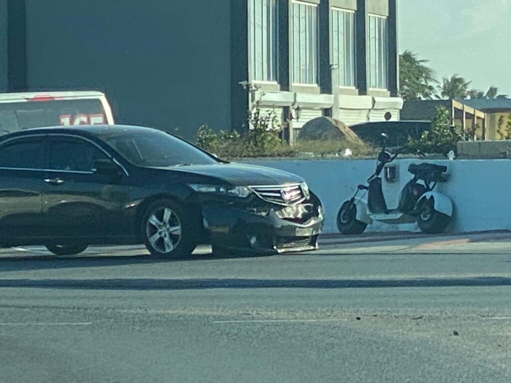 Dialuna atardi a drenta informe di un accidente na e rotonde panort di Acero na Tanki Leendert, mesora a dirigi un patruya na e sitio. Na yegada di e patruya a bin compronde cu aki ta trata di un accidente pa falta di preferencia unda un auto a subi e rotonde sin a duna e scooter electrico preferencia. Afortunadamente ningun hende a resulta herida.