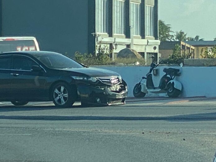 Dialuna atardi a drenta informe di un accidente na e rotonde panort di Acero na Tanki Leendert, mesora a dirigi un patruya na e sitio. Na yegada di e patruya a bin compronde cu aki ta trata di un accidente pa falta di preferencia unda un auto a subi e rotonde sin a duna e scooter electrico preferencia. Afortunadamente ningun hende a resulta herida.